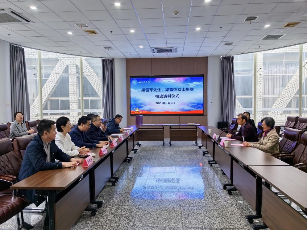 5月9日,梁雪军先生、梁雪莲女士向乐鱼网页版页面登录博物馆捐赠校史资料仪式举行。校党委常委、副校长常江,梁雪军、梁雪莲,校史专家姚远教授,校庆办、博物馆相关负责人参加仪式。