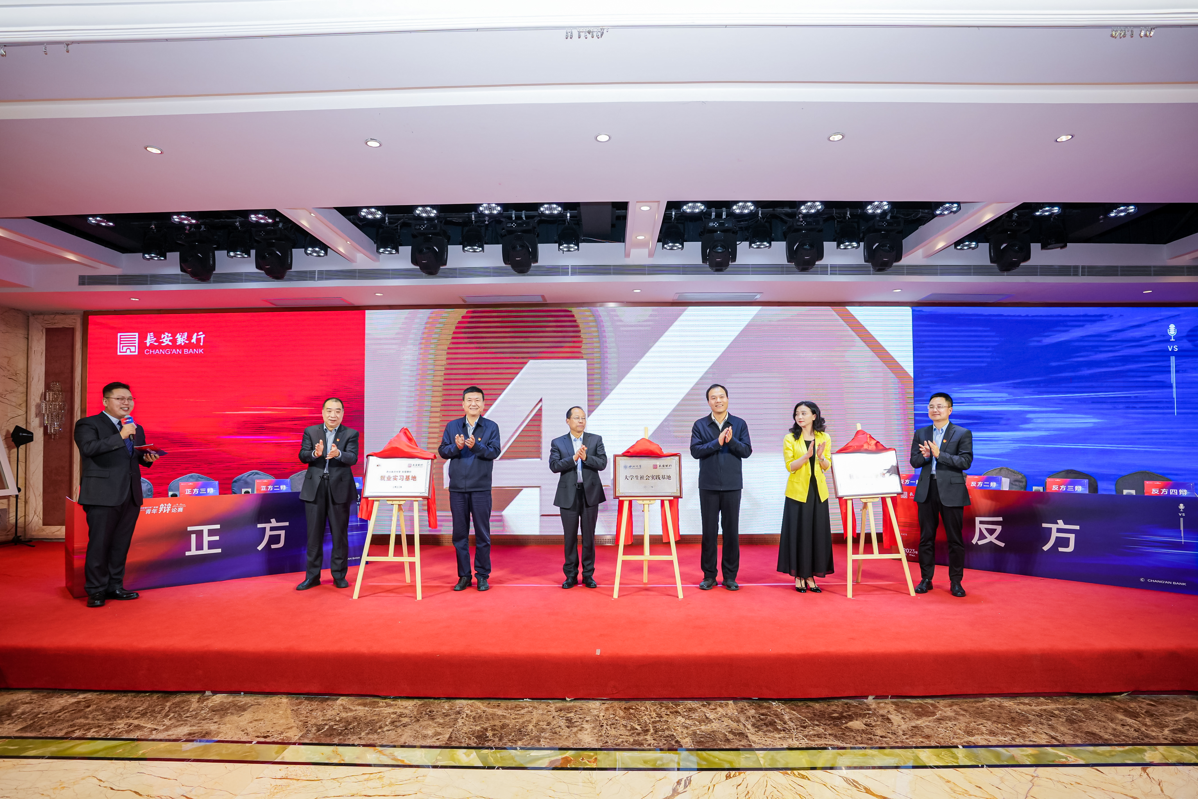 5月4日下午,乐鱼网页版页面登录师生代表参加长安银行大学生社会实践基地挂牌仪式暨首届“长安银行杯”青年辩论赛。共青团陕西省委书记徐永胜、陕西省委教育工委副书记陈乃霞、省委督察组督查专员余天西、长安银行党委书记、董事长张全明、乐鱼网页版页面登录党委副书记吕建荣、西安外国语大学党委副书记马洁、西北政法大学党委副书记郭武军等领导出席活动。