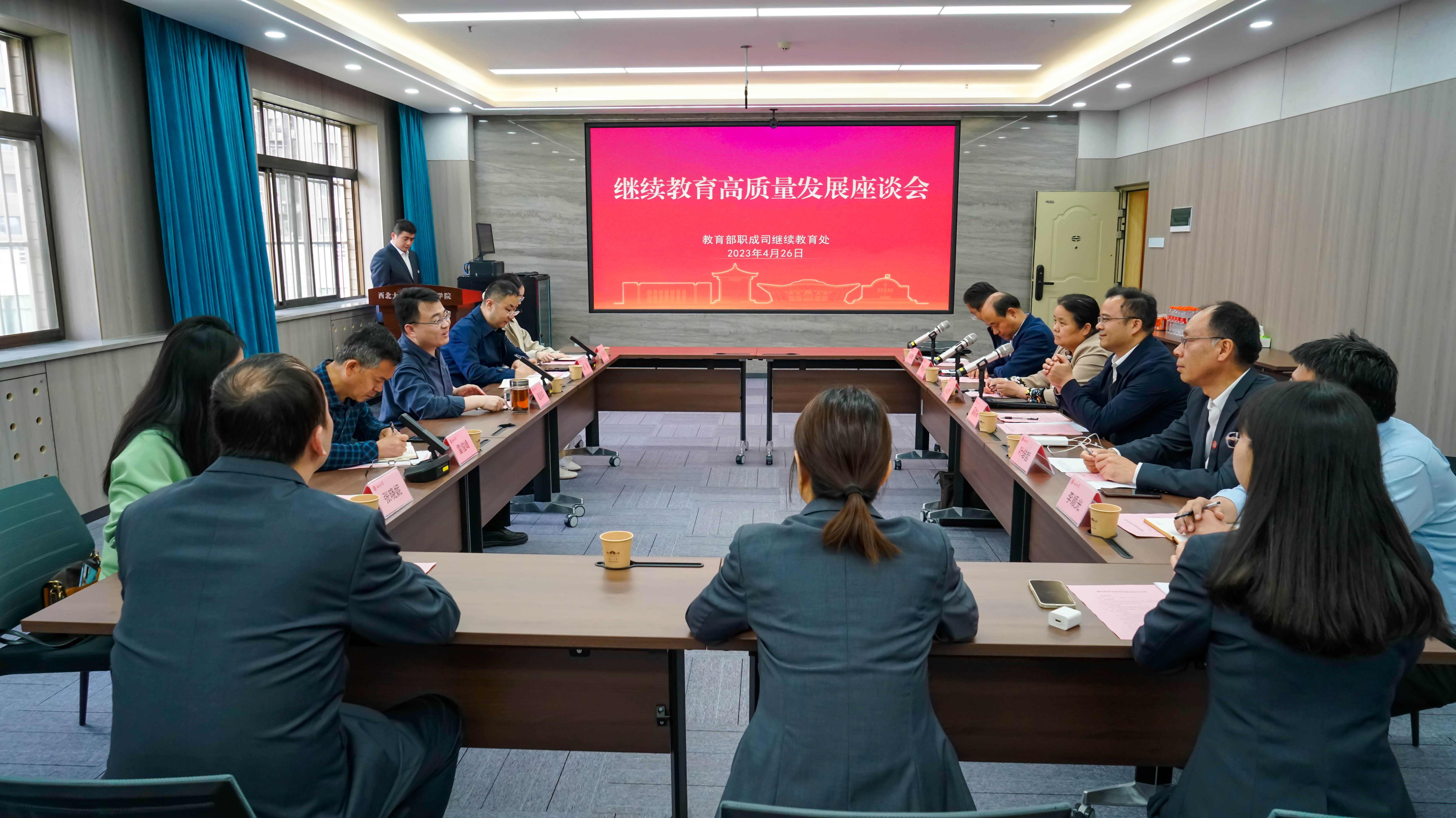 奚家米在座谈会上致辞。高强汇报了陕西省继续教育改革发展情况。在交流发言阶段,与会代表以新时代继续教育高质量发展为主题,畅谈改革实践中的举措、成效、存在问题和意见建议,为继续教育高质量发展建言献策。