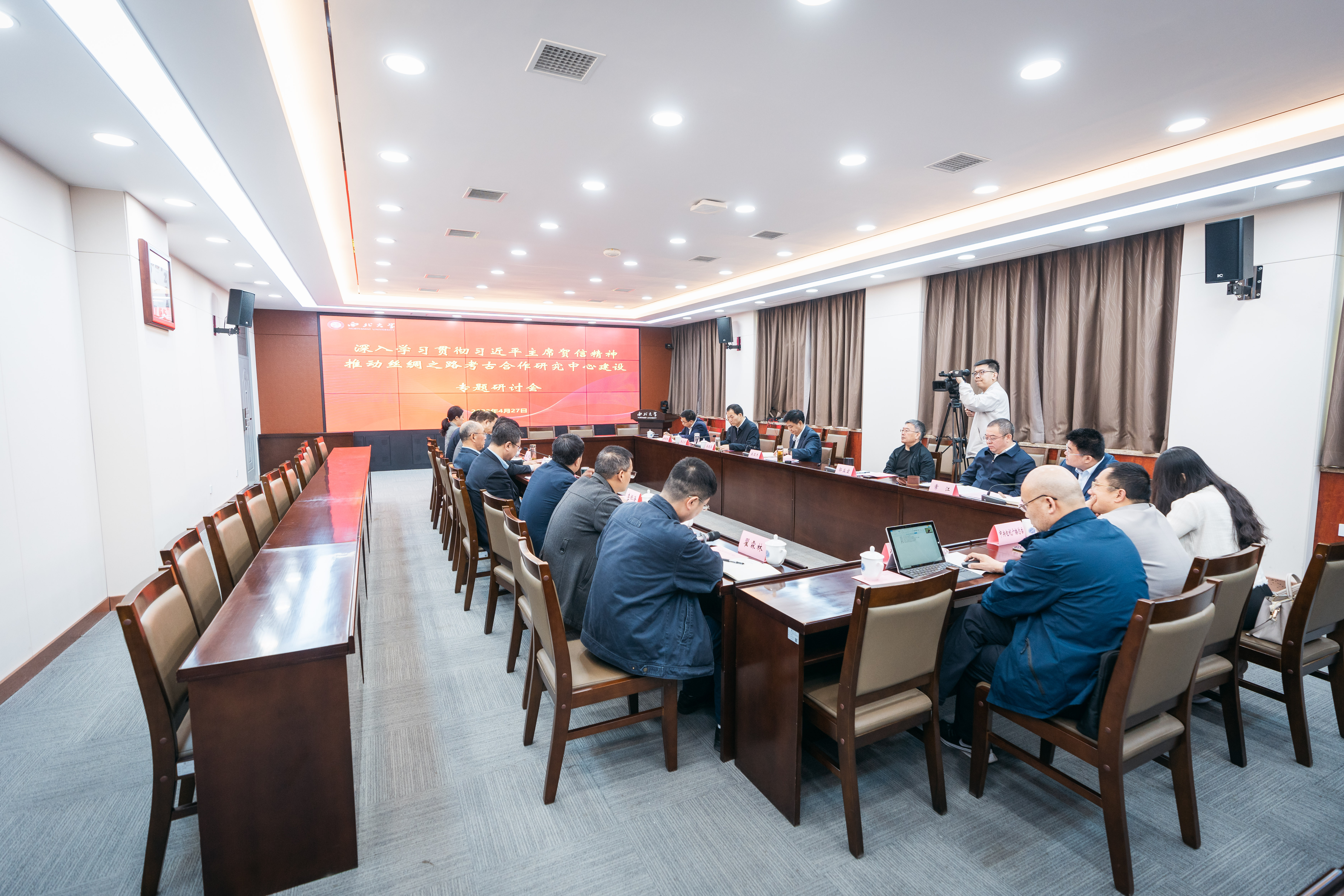 4月27日上午,乐鱼网页版页面登录在长安校区召开“深入学习贯彻习近平主席贺信精神 推动丝绸之路考古合作研究中心建设”专题研讨会。