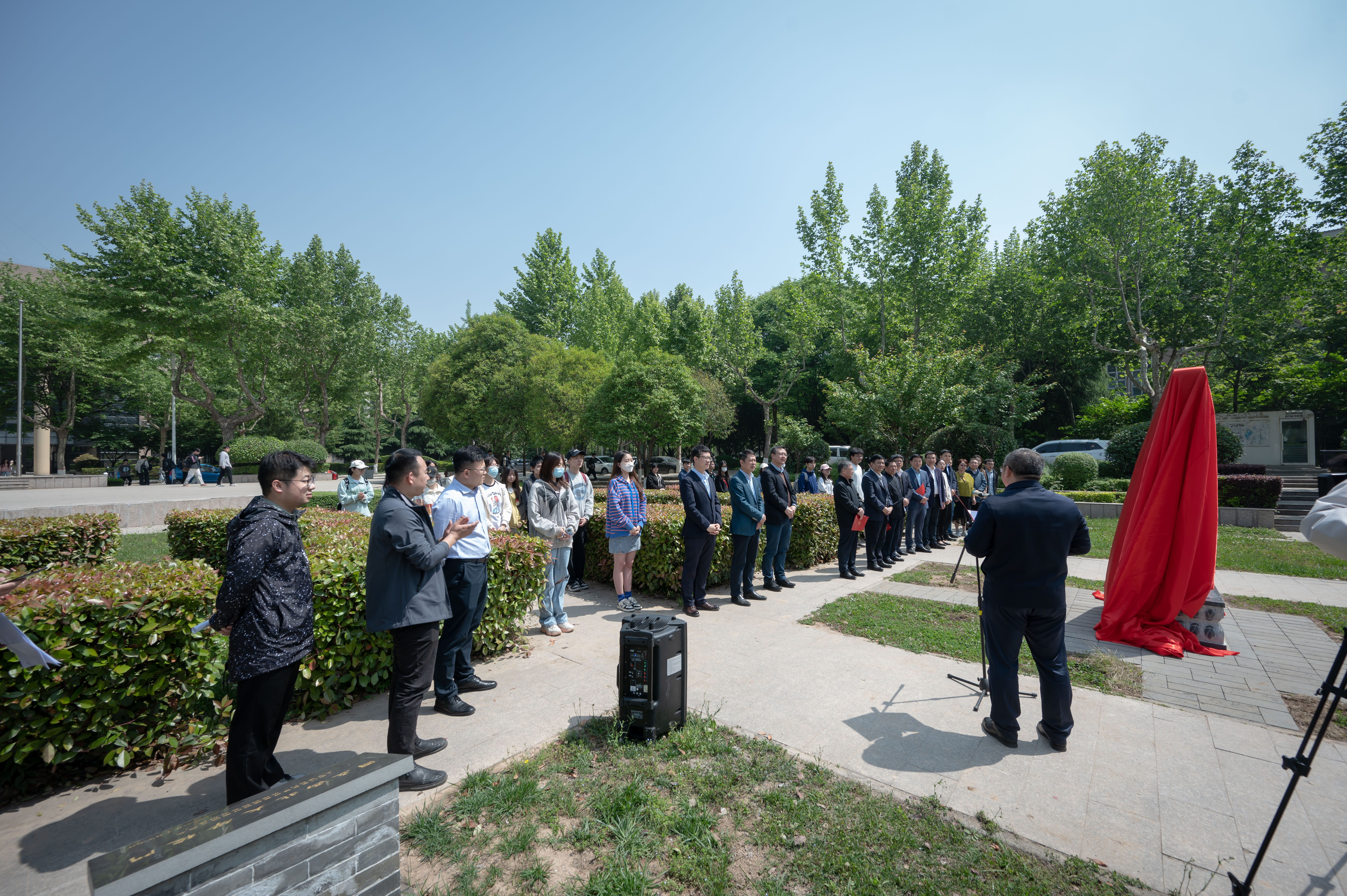 仪式上,王亚杰、郭立宏、田明纲、田苗共同为纪念碑揭幕,王亚杰代表学校向田苗颁发捐赠证书,姚远介绍了《国立乐鱼网页版页面登录侨寓城固记》的历史背景,刘卫平、岳峰分享了创作感受,田苗代表98级汉语言文学专业全体校友发言。