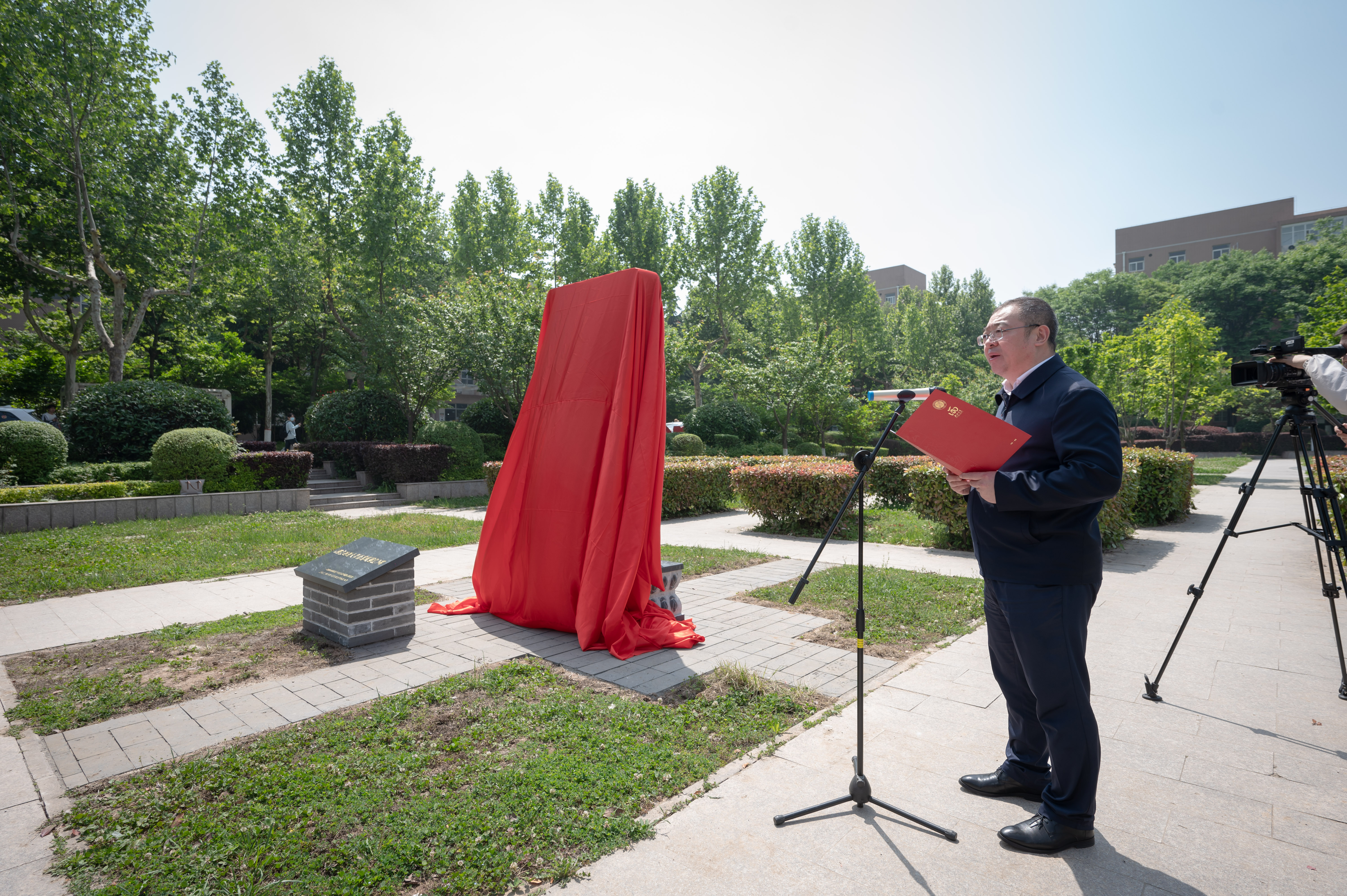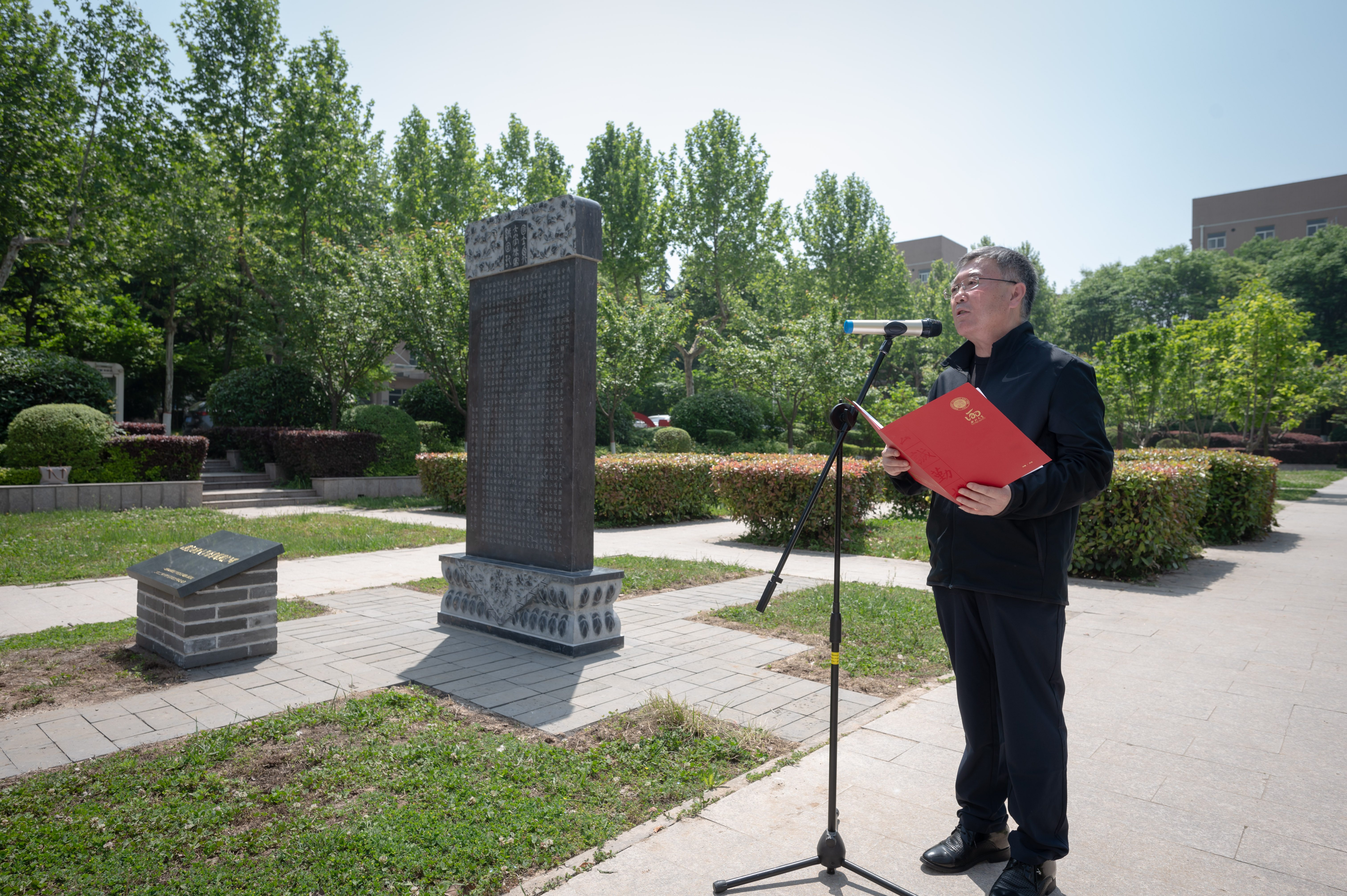 郭立宏在讲话中对长期以来关心支持学校事业发展的各界校友致以亲切问候,并向在复立纪念碑工作中付出辛勤劳作的各位老师表示感谢。他指出,纪念碑的复立,凝结着广大校友对母校的深情眷恋与无私支持,这是对百廿西大办学精神和办学理念的郑重铭刻,也是西大人栉风沐雨、坚守理想、砥砺奋斗的重要见证,更是全体西大人对建校120年办学初心和使命的又一次重温,他希望全体西大人以120周年校庆为新起点,接续奋斗、砥砺前行,为实现中华民族伟大复兴贡献“西大智慧”和“西大力量”。
