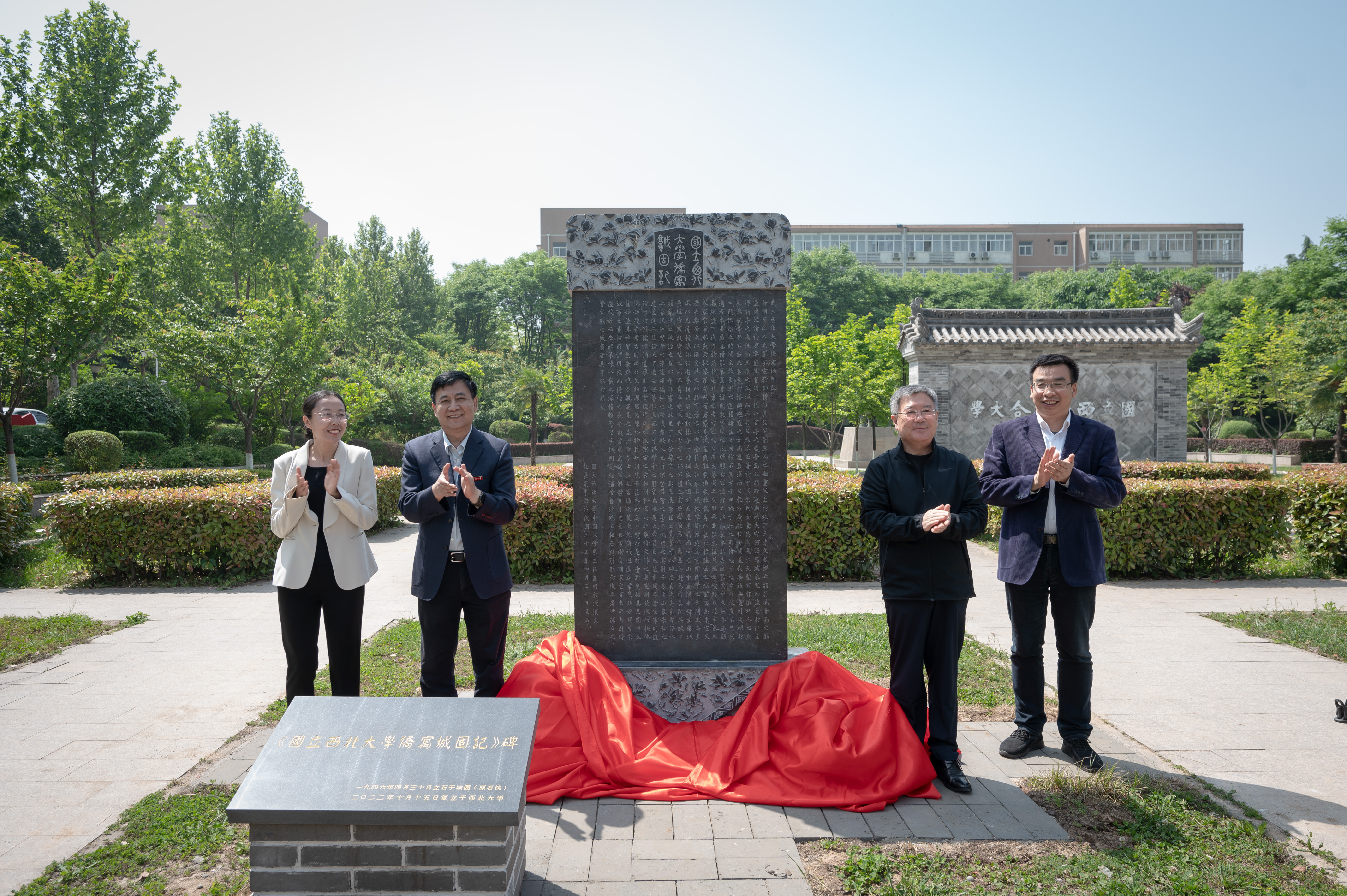 4月27日上午,乐鱼网页版页面登录在长安校区举行《国立乐鱼网页版页面登录侨寓城固记》纪念碑复立仪式。校党委书记王亚杰,校长郭立宏,校党委常委、宣传部部长田明纲,校史专家姚远编审,参与创作的刘卫平、岳峰教授,校友代表田苗及学校相关部门负责人参加仪式。仪式由校党委常委、副校长、120周年校庆工作总指挥常江主持。