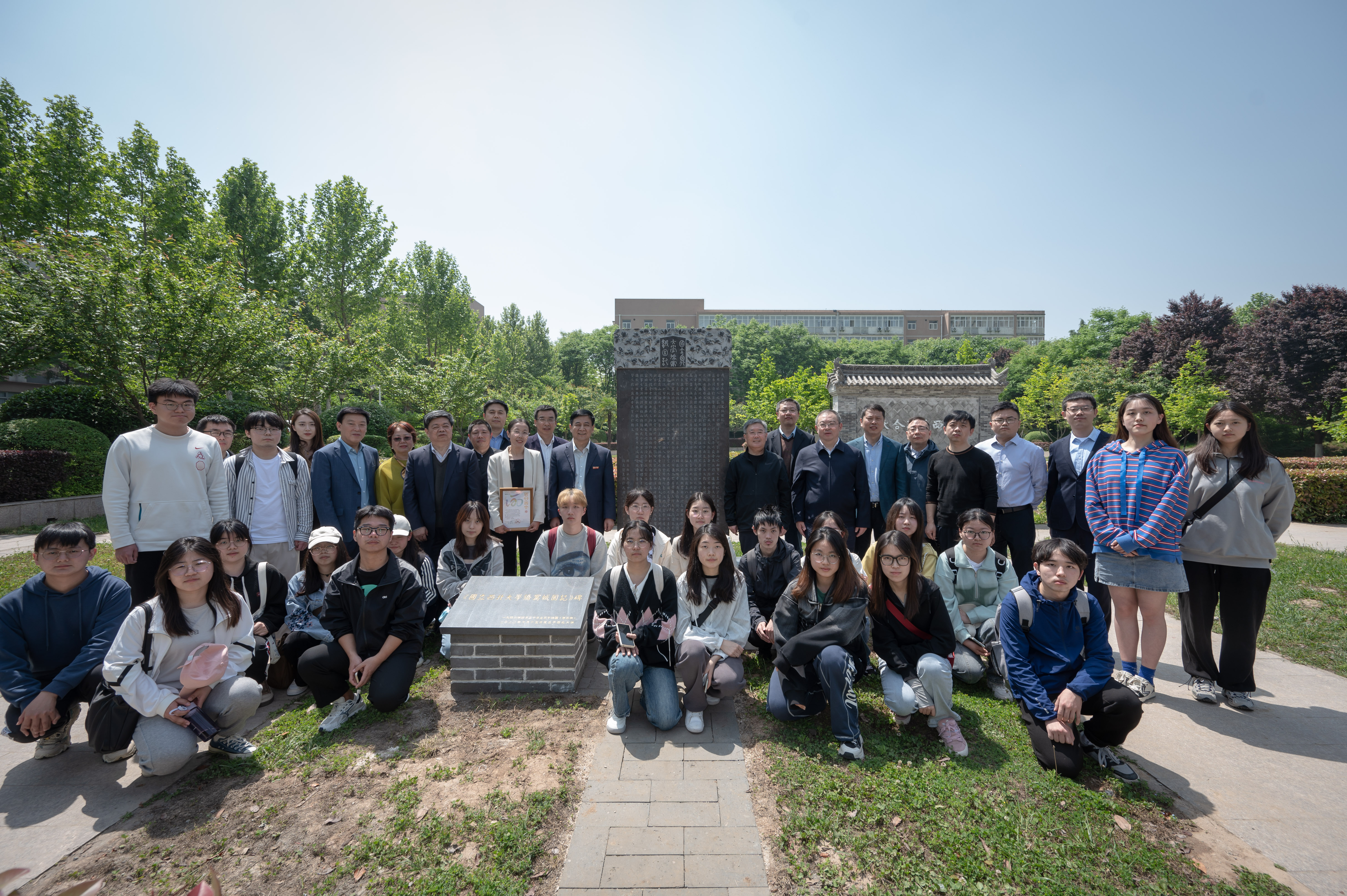 《国立乐鱼网页版页面登录侨寓城固记》纪念碑原碑是1946年国立乐鱼网页版页面登录告别城固、回迁西安前夕在城固办学讲舍塑立。碑文由时任中国文学系主任高明教授撰写,时任校长刘季洪于1946年4月30日立石。在建校120周年之际,由乐鱼网页版页面登录98级、99级汉语言文学专业全体校友捐资复立《国立乐鱼网页版页面登录侨寓城固记》纪念碑两块,均为青石材质,高240公分、宽120公分,由文学院教授刘卫平撰写后序,艺术学院教授岳峰书丹,分别复立于乐鱼网页版页面登录长安校区校史文化广场和汉中市城固一中校园内。(图/ 王天问)