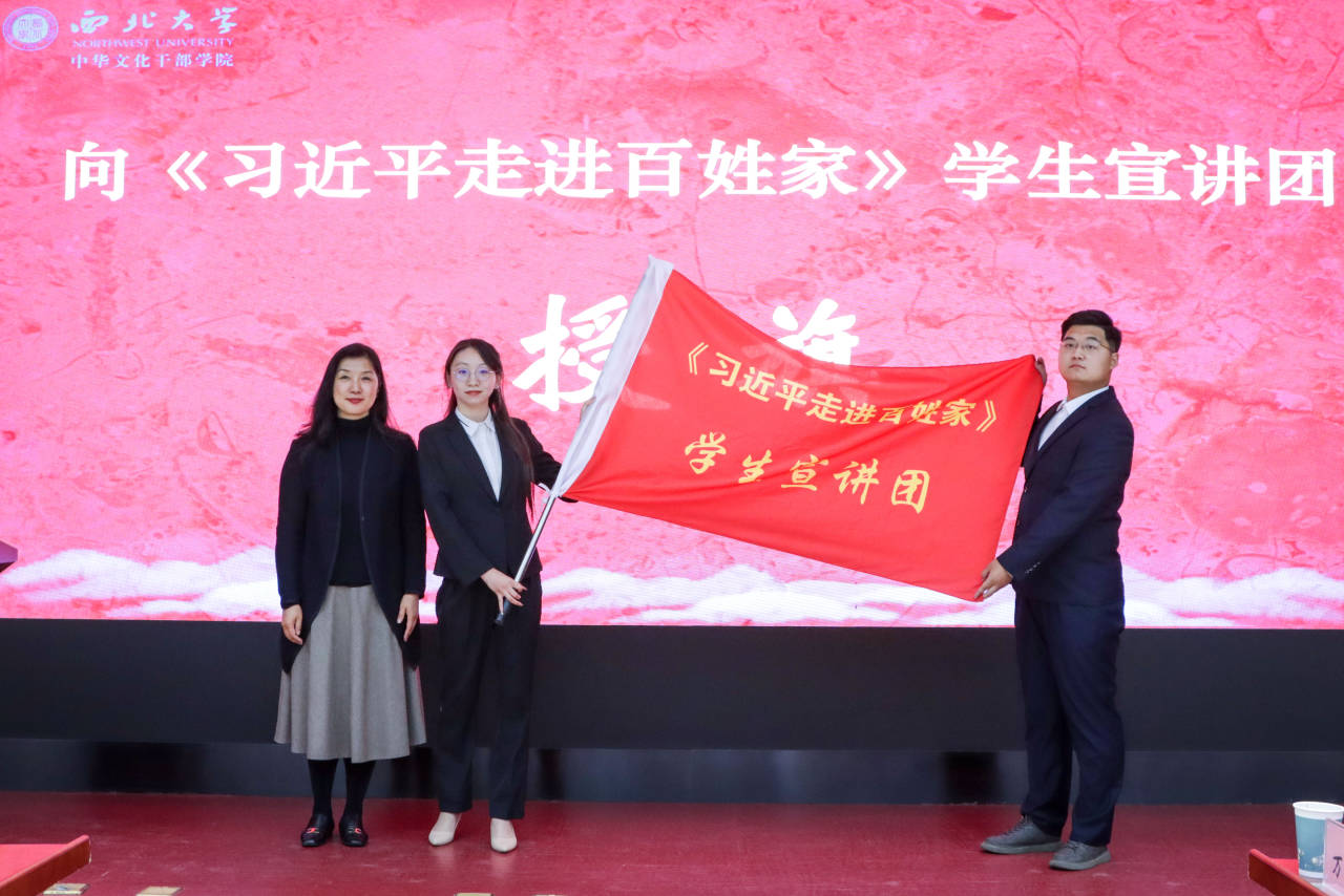 座谈会上,张清为《习近平走进百姓家》学生宣讲团授旗,林海君为青年学生代表赠书。陈若星、刘建妮、同雪莉、付粉鸽、高春燕分享了读书感悟,田明纲、何翔、田兵权结合工作领域交流了思考体会。