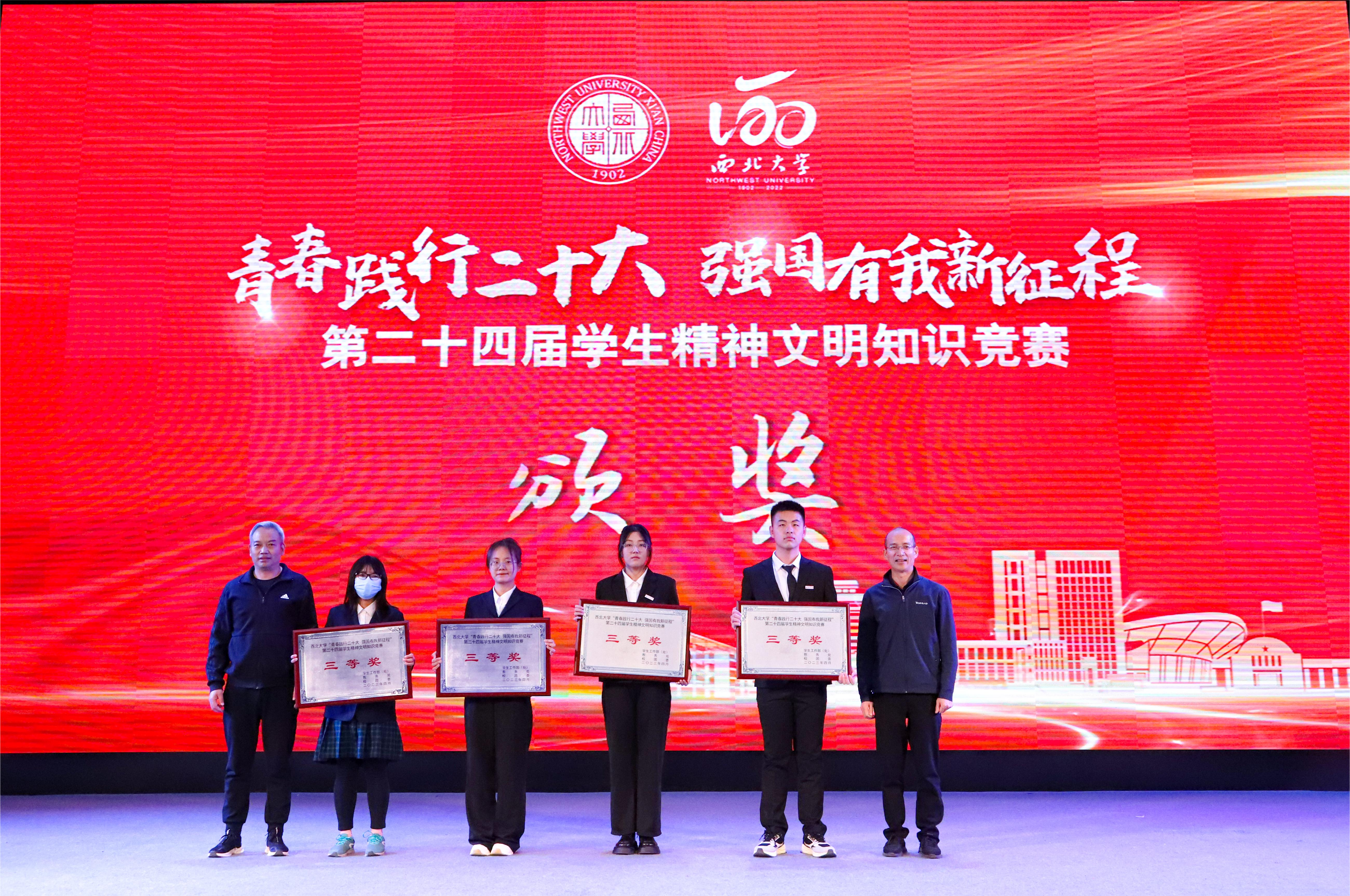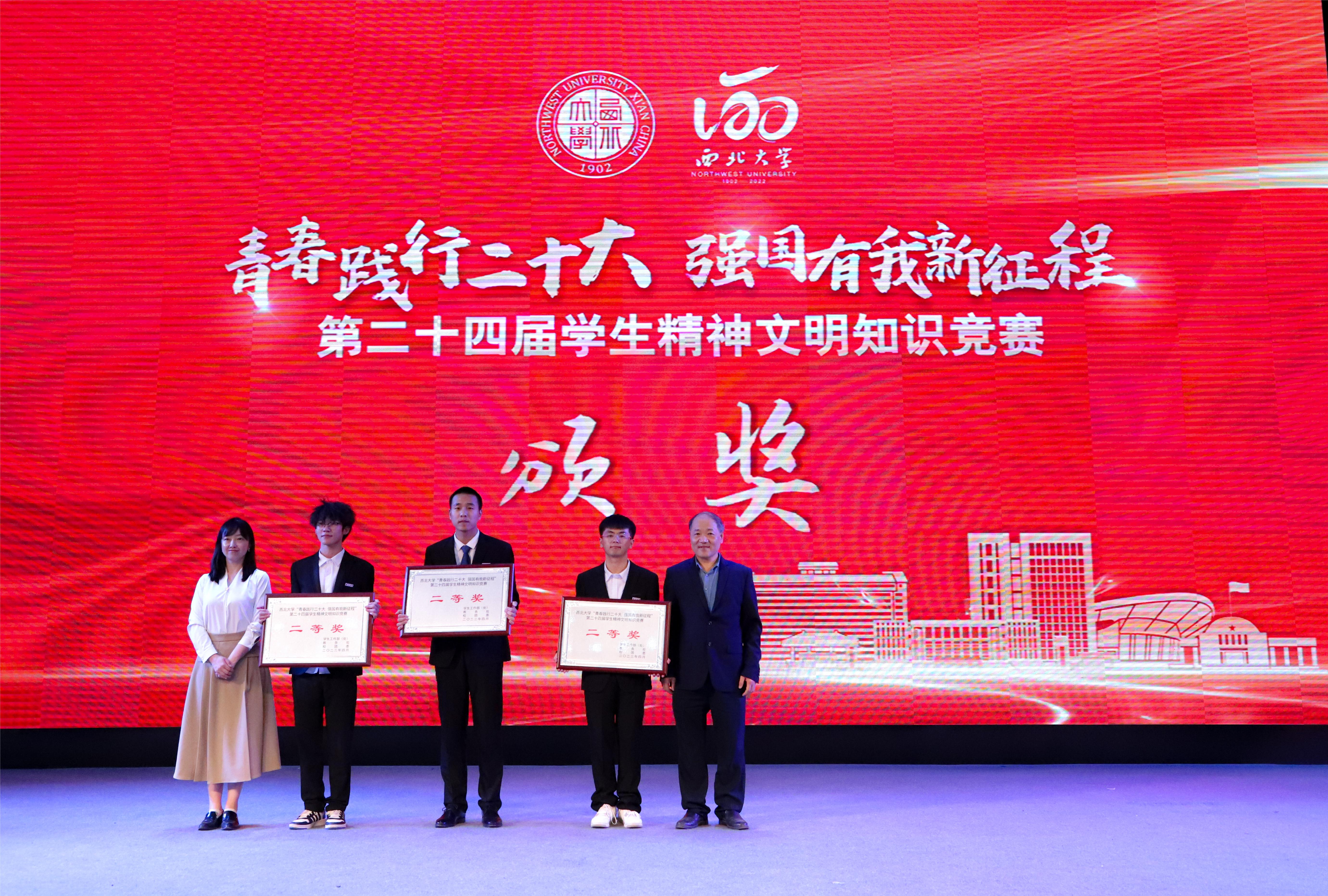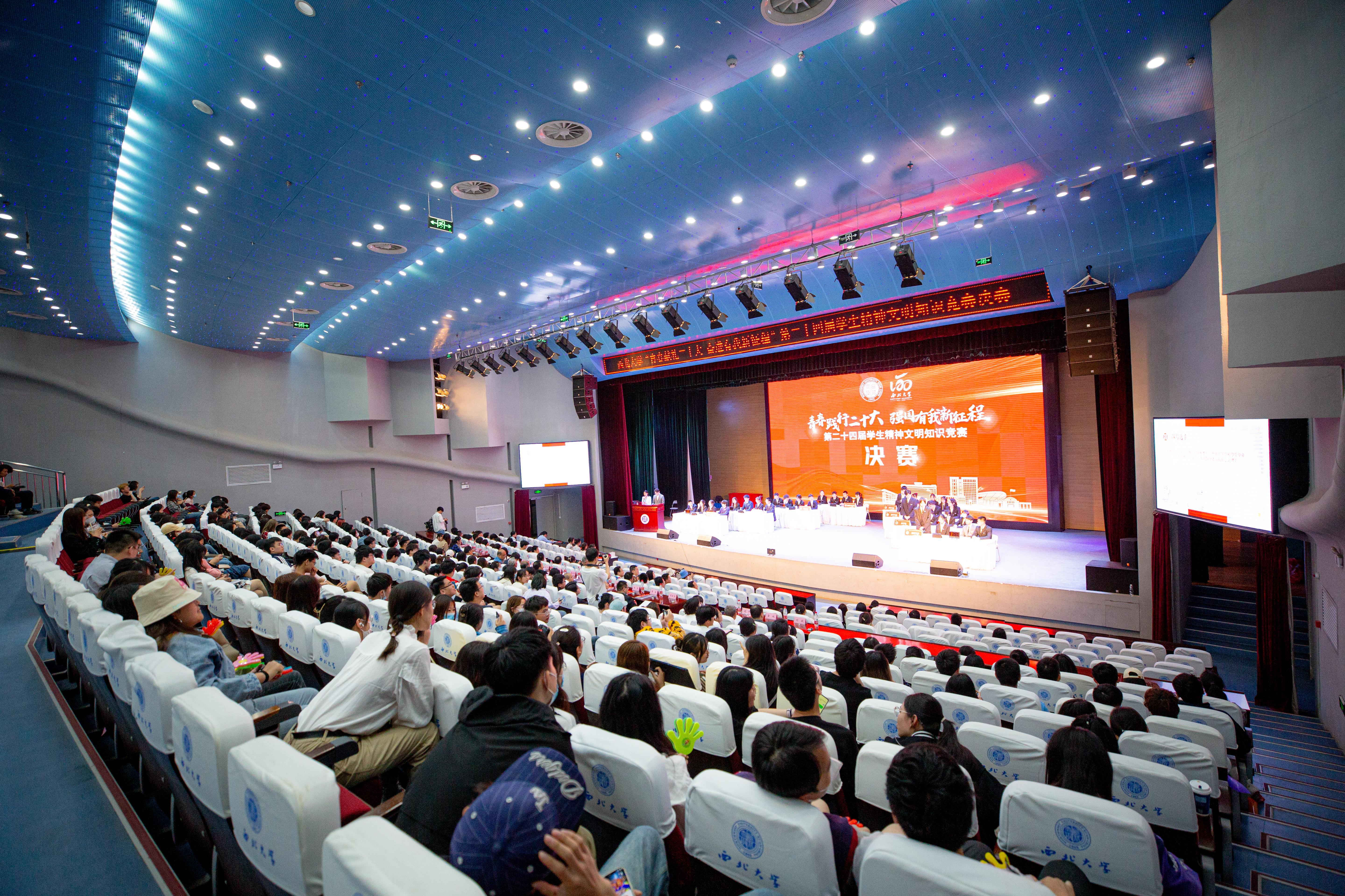 4月20日,由学生工作部(处)、教务处、校团委共同主办的“青春践行二十大强国有我新征程”第二十四届学生精神文明知识竞赛决赛在长安校区举行。校党委副书记吕建荣,学生工作领导小组成员单位负责人以及院系学生工作负责人、辅导员代表、学生代表400余人在现场观看了此次决赛。