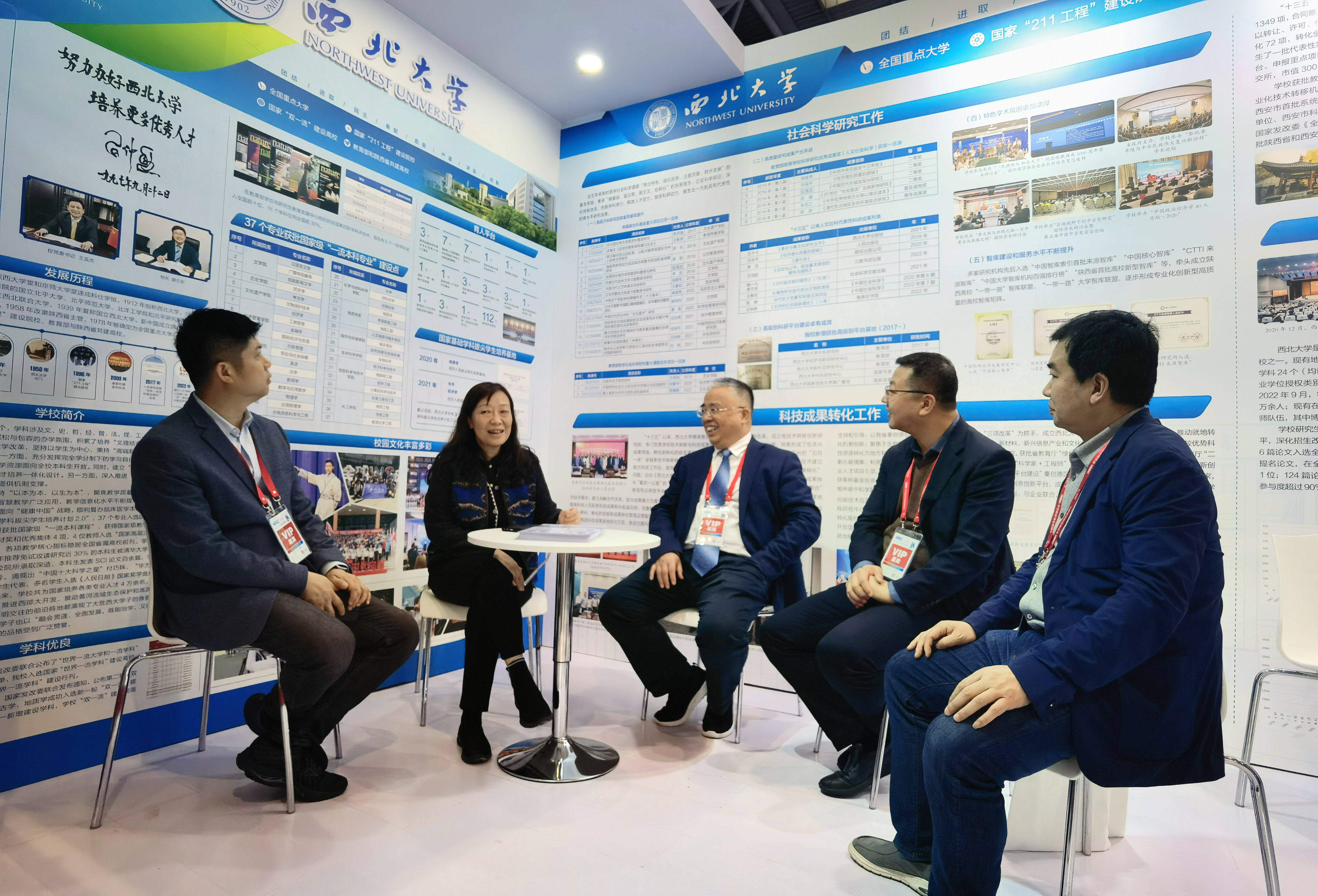 高博会期间,陕西省政府学位委员会秘书长袁宁和郭立宏、奚家米分别来到高校展区参观,并在乐鱼网页版页面登录参展区域了解布展情况,慰问参展工作人员。兄弟高校、展商代表、参展观众纷纷来到乐鱼网页版页面登录展位沟通交流、洽谈合作、咨询招生等。