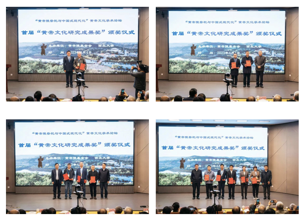 开幕式现场举行了首届“黄帝文化研究成果奖”的颁奖仪式。本次评奖活动共设四类奖项,一等奖一项,二等奖三项,三等奖五项,优秀奖七项。其中,赵世超教授荣获一等奖;孙周勇、李军、穆涛等学者获二等奖;任晓伟、李桂民、朱鸿召等学者获三等奖;陈战峰、王早娟、兰梁斌等学者获优秀奖。