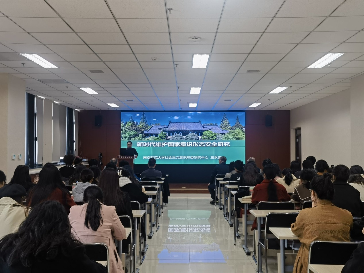 3月25日下午,国务院学位委员会学科评议组成员、南京师范大学马克思主义学院博导王永贵教授应邀做客乐鱼网页版页面登录“侯外庐学术讲座”第269讲,为师生作了题为“新时代维护国家意识形态安全研究”的学术报告。讲座由马克思主义学院何博教授主持,学院100余名师生听取了讲座。