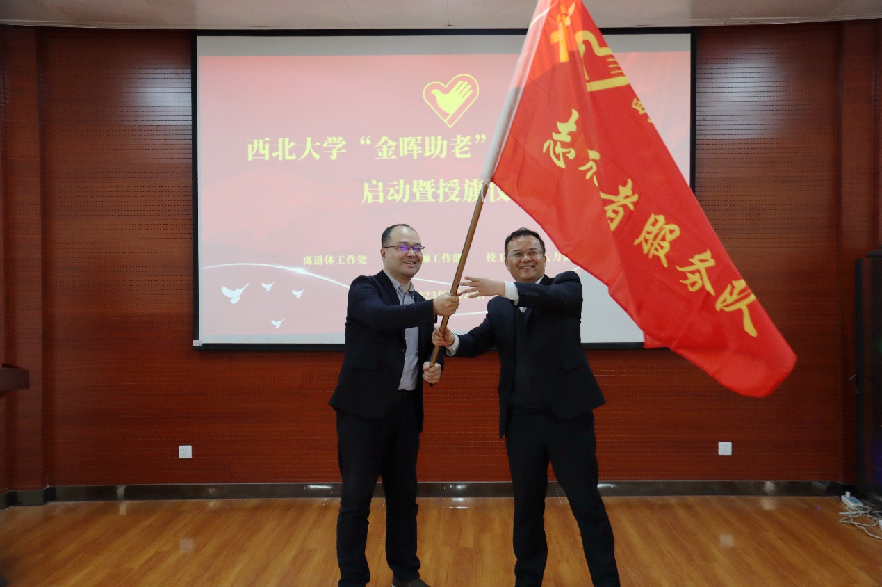 3月27日下午,乐鱼网页版页面登录“金晖助老”志愿者服务队成立暨授旗仪式在长安校区举行。校党委常委、副校长奚家米,原校工会主席刘续德出席,学校相关单位负责人,离退休党委委员、“金晖助老”志愿者和离退休教职工代表共50余人参加了仪式。仪式由离退休工作处负责人主持。