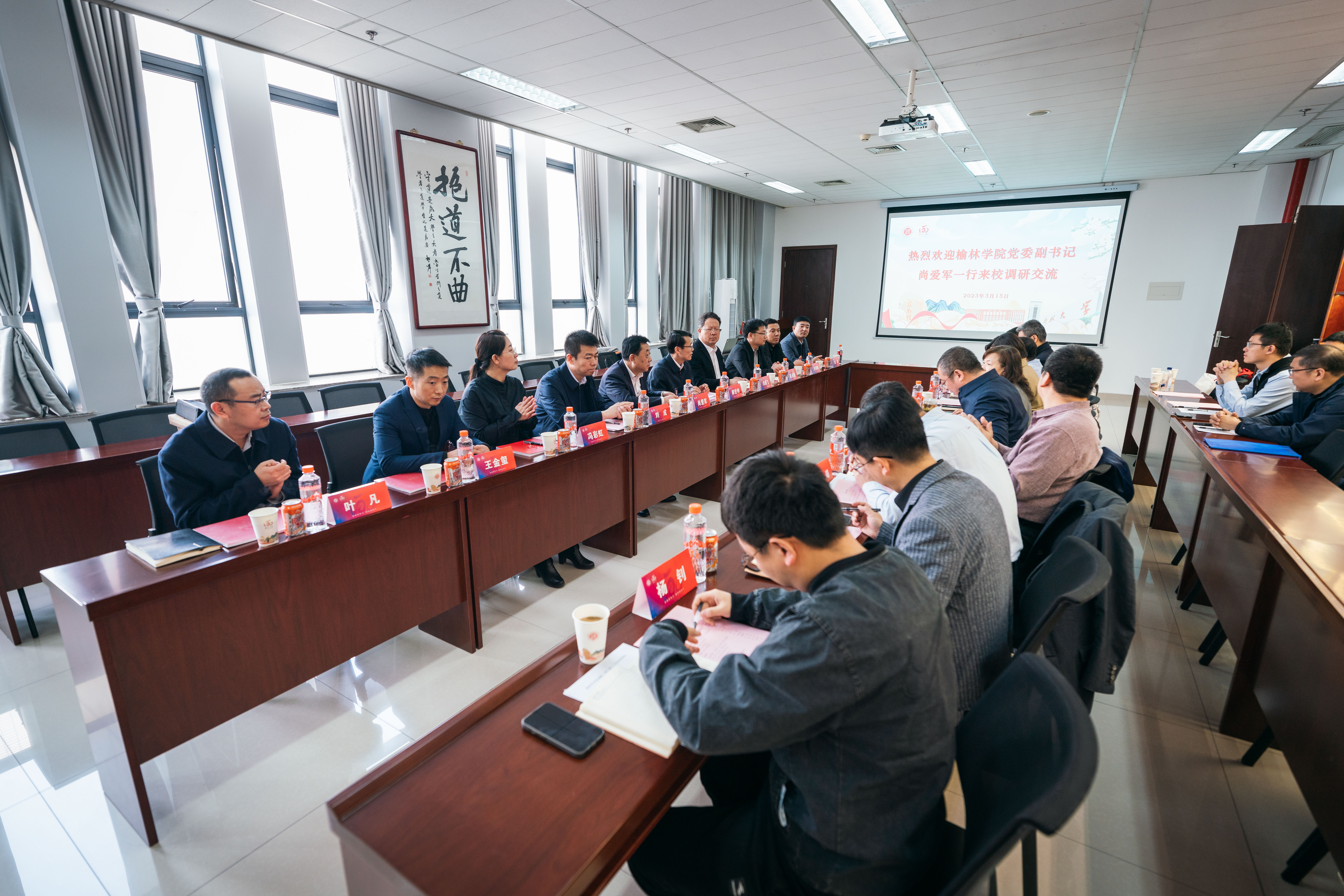 3月15日上午,在榆林学院党委副书记尚爱军、榆林市委副秘书长郝宏伟的带领下,榆林学院、榆林市委办公室相关部门负责同志一行来乐鱼网页版页面登录,就校庆筹备工作进行专题调研座谈。校党委常委、副校长、120周年校庆工作总指挥常江,校党委常委、宣传部部长田明纲,校庆办及部分校庆工作组负责人参加了座谈和会见。