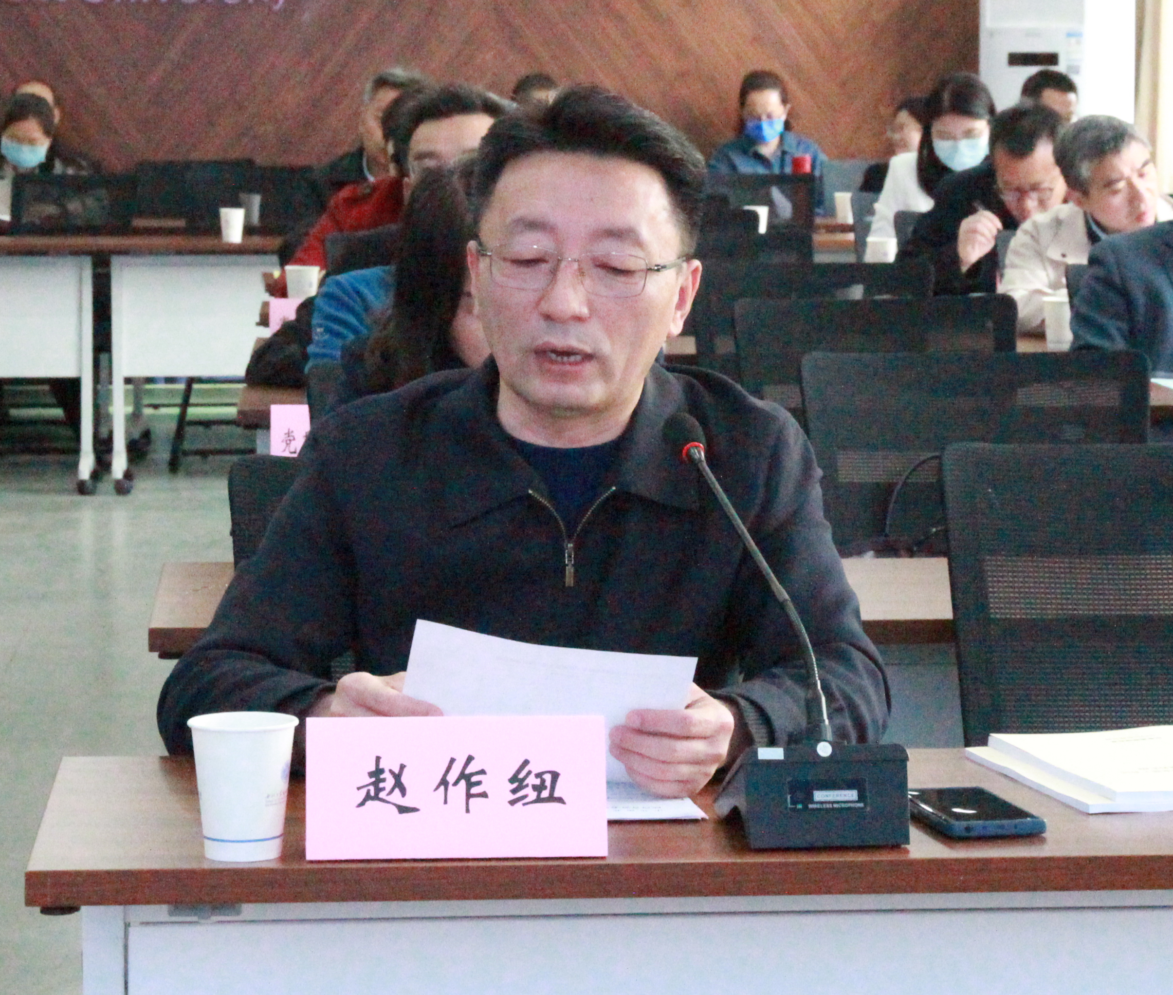 会上学校各基层党组织书记围绕落实全面从严治党主体责任、巡视问题整改、廉政风险排查和“清廉校园建设”等方面依次进行述责述廉,赵作纽逐一进行现场质询并点评,与会评委依据评分标准现场测评打分。