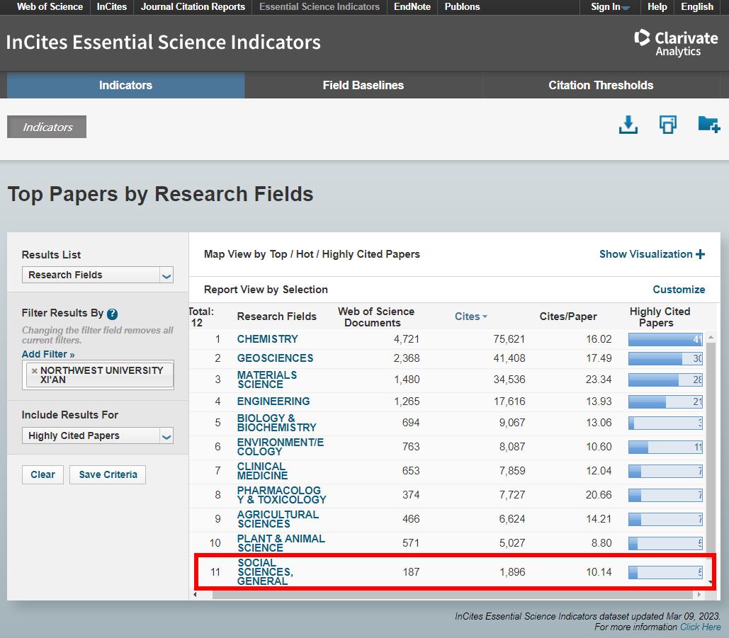 基本科学指标数据库划分22个学科领域,是基于科睿唯安Web of Science所收录的全球12000多种学术期刊的1000多万条文献记录而建立的计量分析数据库,是衡量科学研究绩效、跟踪科学发展趋势、评价国家/地区高校和学术机构国际学术水平及影响力的重要指标工具之一。
