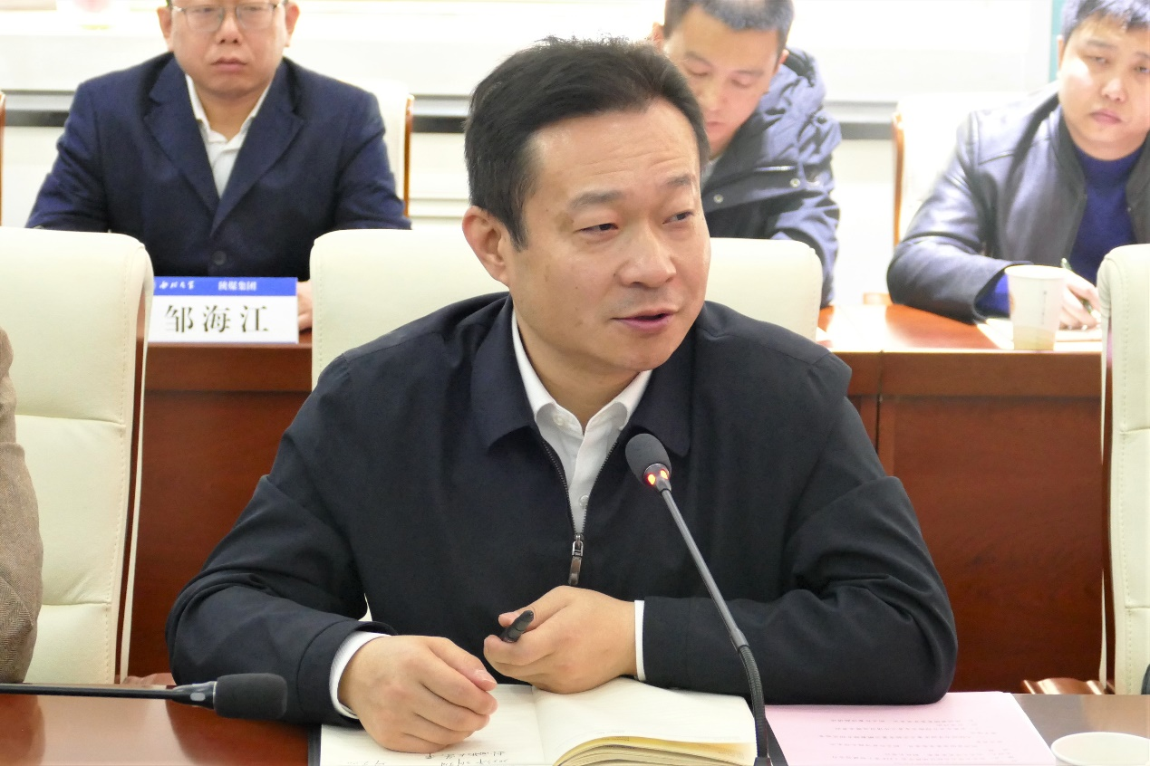 中陕核、延长石油、陕投集团、陕煤集团、陕西地矿负责同志分别介绍了本单位相关业务的开展情况、存在的技术瓶颈以及需要的科技支撑,并表达了与学校开展系统深入合作的意愿。