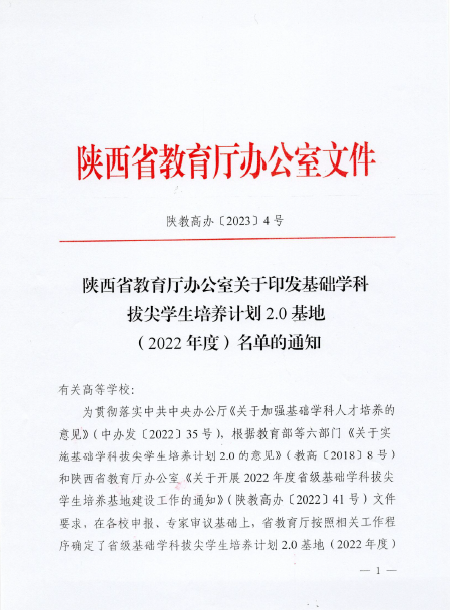 近日,陕西省教育厅公布省级基础学科拔尖学生培养计划2.0基地评选结果,乐鱼网页版页面登录“考古学拔尖学生培养基地”“生物科学拔尖学生培养基地”成功入选。此前,地质学、化学、经济学等3个基地入选教育部基础学科拔尖学生培养计划2.0。