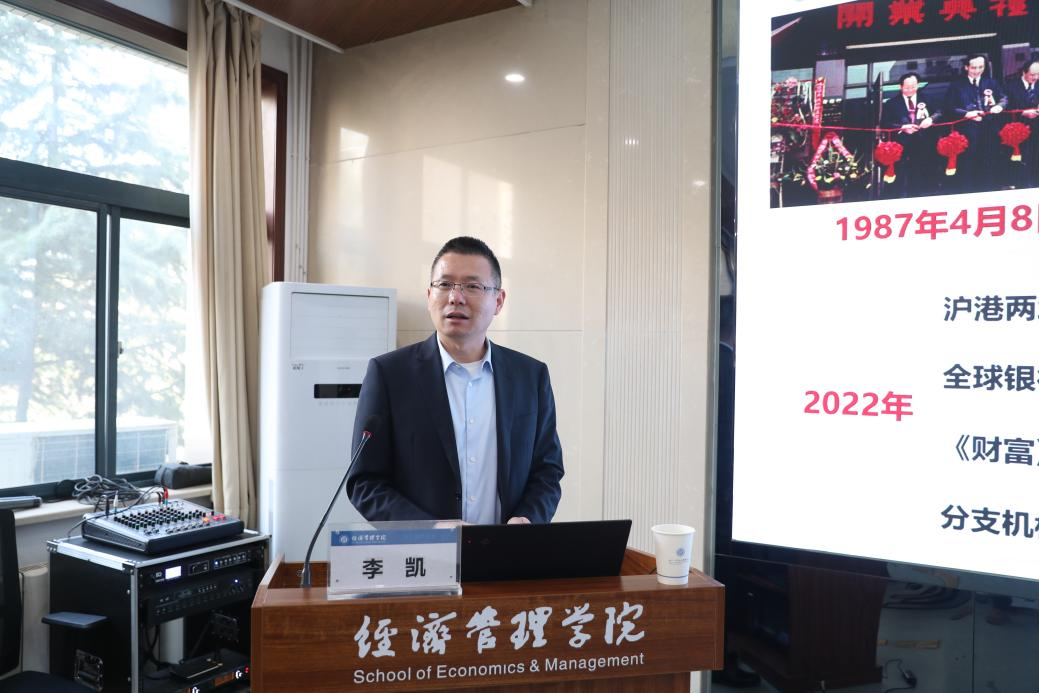 典礼结束后,招商银行西安分行副行长李凯以“简谈招商银行:初探金融市场”为主题带来了精彩纷呈的一课。李凯通过图文、数据形式给大家展示了金融领域不同行业的发展情况,在充满变局的时代里,他鼓励同学们要学会拥抱未来、拥抱行业、拥抱企业和拥抱自己。随后,同学们就择业选择、职业发展及未来规划等话题与嘉宾积极互动。