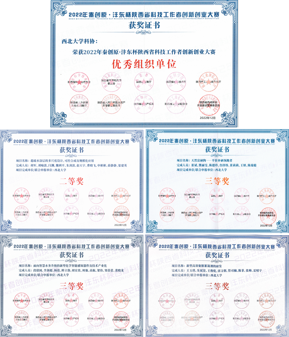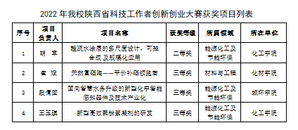 日前,陕西省科协等部门公布了2022年陕西省科技工作者创新创业大赛结果,乐鱼网页版页面登录申报的4个项目获奖,其中二等奖1项、三等奖3项,校科协荣获优秀组织奖。