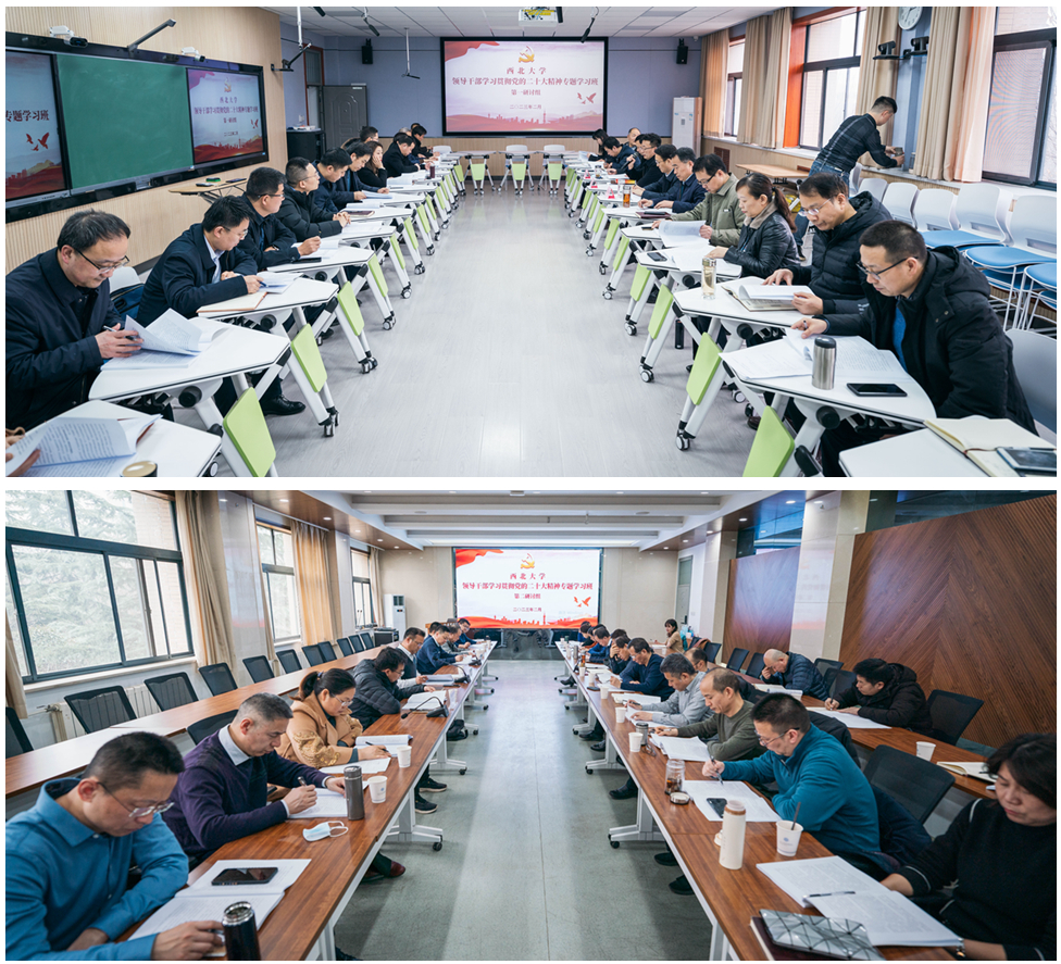 在分组领学和专题研讨环节,校领导带头,组织参训学员严格按照“五个牢牢把握”“三个全面”“七个聚焦”“九个深刻领会”等要求,原原本本、逐字逐句学习了党的二十大报告和党章,学习了习近平总书记在学习贯彻党的二十大精神研讨班开班式上的重要讲话、《中共中央关于认真学习宣传贯彻党的二十大精神的决定》、习近平总书记在瞻仰延安革命纪念地时的重要讲话、习近平总书记在陕西延安和河南安阳考察时的重要讲话精神、省委书记赵一德在全省市厅级主要领导干部学习贯彻党的二十大精神专题学习班开班式上的讲话和《中共陕西省委关于认真学习宣传贯彻党的二十大精神的工作方案》等重点内容。大家紧扣培训主题,结合党的十八大、十九大精神和学校“十四五”发展规划的目标任务以及个人学习、工作实际,读原文、悟原理、谈体会、议收获、谈设想、提建议,深入开展学习研讨,交流分享心得体会。