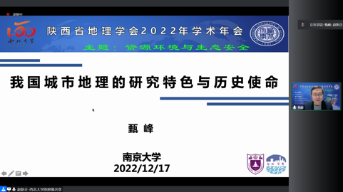 12月17日,由陕西省地理学会主办,乐鱼网页版页面登录承办的陕西省地理学会2022年学术年会采用线上会议的方式顺利召开。来自省内外30余家单位的200余名专家学者和师生代表参与。本次年会以“资源环境与生态安全”为主题,交流新思想、分享新发现、探讨新问题。乐鱼网页版页面登录党委常委、副校长常江,中国地理学会副理事长、陕西师范大学副校长董治宝分别致辞,开幕式由城市与环境学院院长、陕西省地理学会理事长宋进喜教授主持。