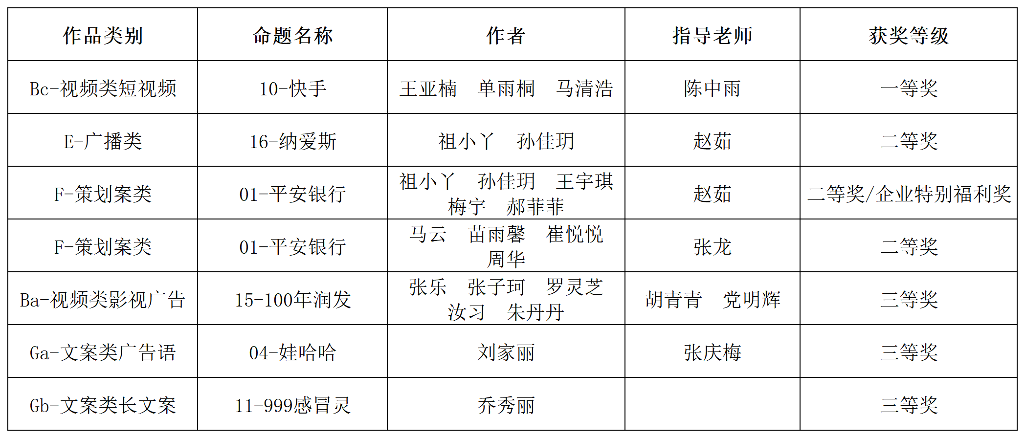 12月15日,第14届全国大学生广告艺术大赛学科竞赛成果展示云盛典在北京举行。乐鱼网页版页面登录新闻传播学院2019级广告班王亚楠、单雨桐和2019级网络与新媒体班马清浩共同创作的视频类作品获全国一等奖,由2020级网络与新媒体班祖小丫、孙佳玥、王宇琪、梅宇、郝菲菲共同创作的策划案类作品获平安银行企业特别福利奖。乐鱼网页版页面登录教师李常青被评为国家级优秀组织工作者。