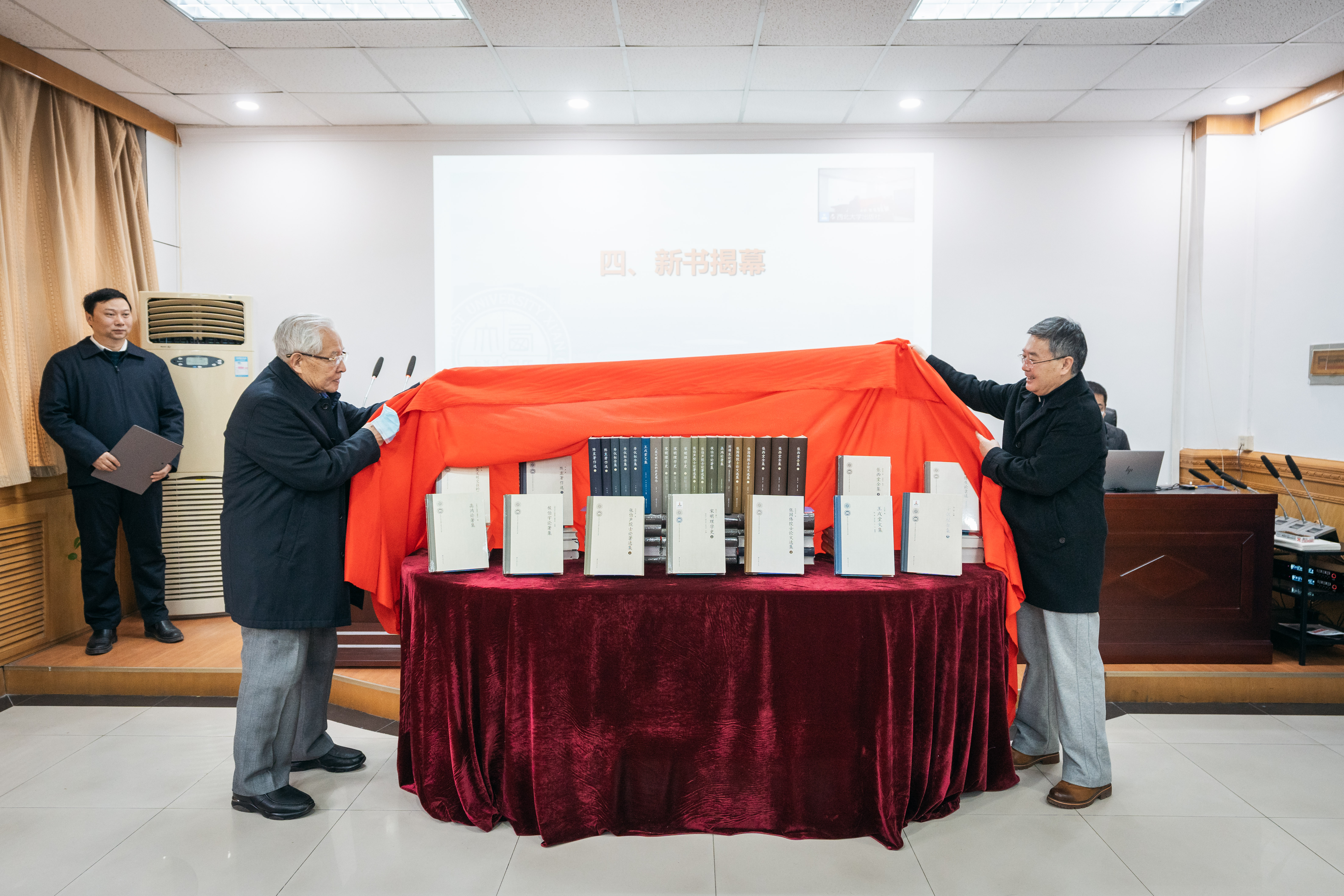 中国科学院院士张国伟和校长郭立宏为新书揭幕