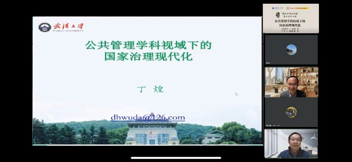 11月18日晚,武汉大学国家治理与公共政策研究中心主任丁煌教授做客乐鱼网页版页面登录“侯外庐讲座”第260讲,线上为师生作了题为“公共管理学科语境下的国家治理现代化”的学术报告。讲座由公共管理学院(应急管理学院)翟绍果教授主持,乐鱼网页版页面登录200余名教师、研究生及本科生参与了此次讲座。