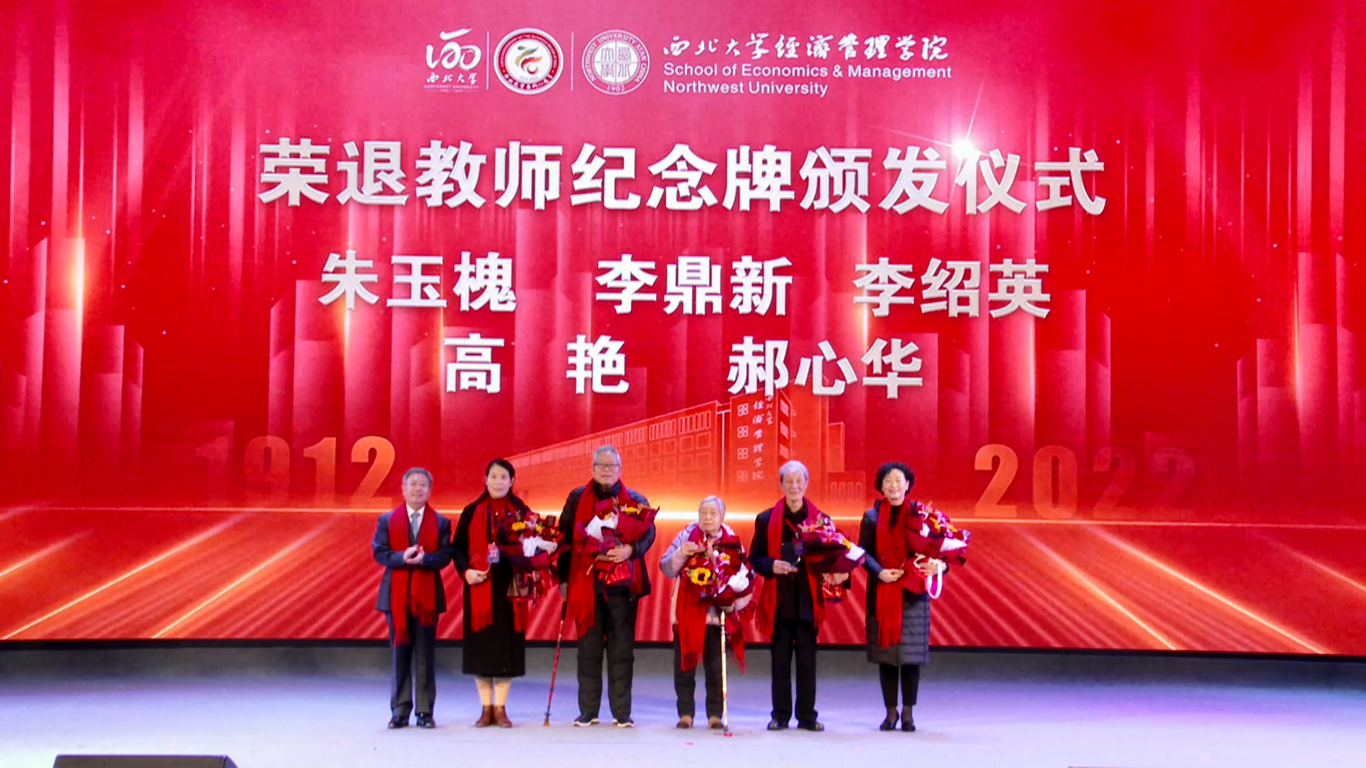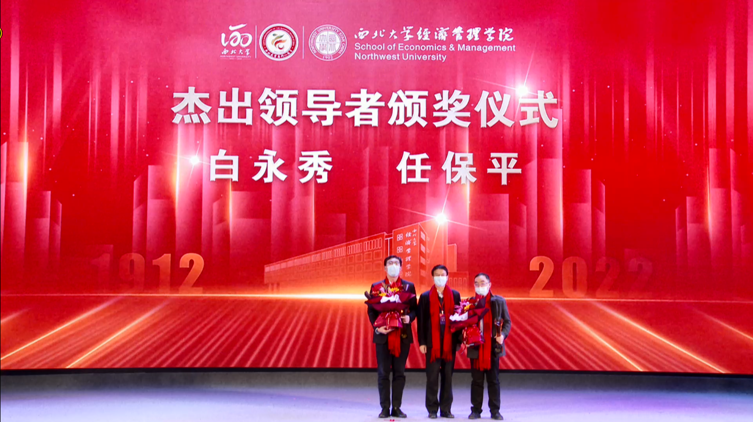 郭立宏向李鼎新、朱玉槐、李绍英三位德高望重的老教师和郝心华、高艳两位荣退教师颁发荣退纪念杯。张远军向经济管理学院两位老院长白永秀教授、任保平教授颁发杰出领导者奖,以表彰他们为学院发展所做的杰出贡献,并激励广大经管人牢记使命、传承创新、不断前行。