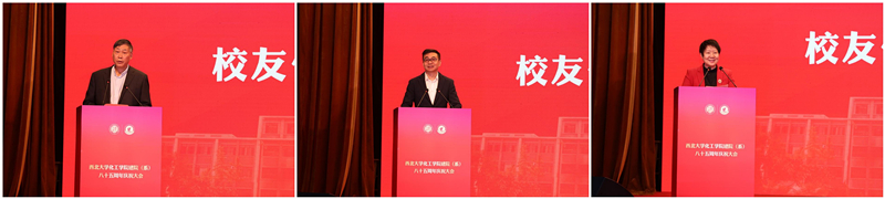 学院79级校友段宝民、86级校友马小奇、94级校友申烨华代表全体院友致辞