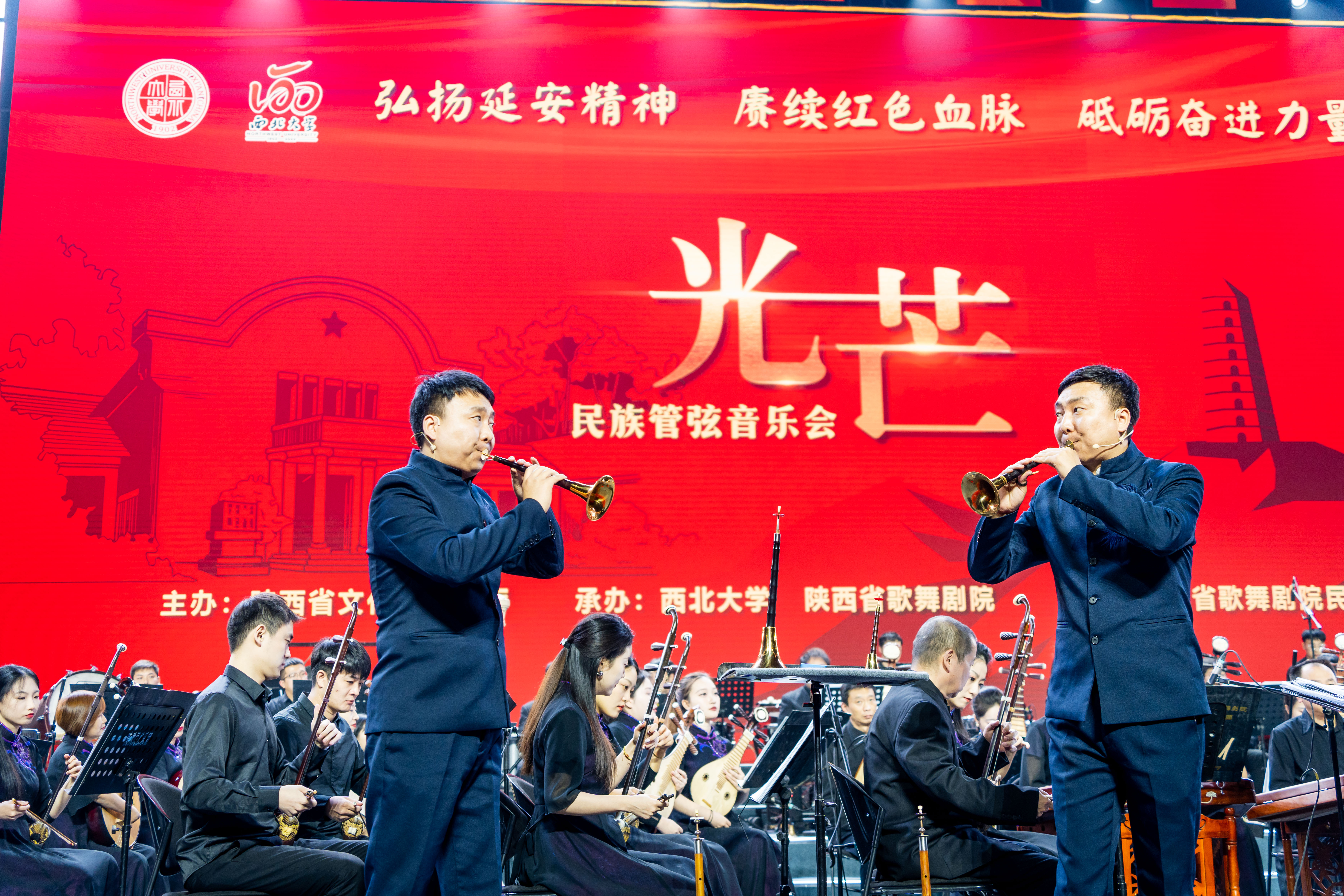 今年是纪念毛泽东同志《在延安文艺座谈会上的讲话》发表80周年,由陕西省歌舞剧院创排的民族管弦音乐会《光芒》,标题取自“延安精神永放光芒”,以延安精神的精神内涵为架构,用中国民乐讲述中国故事、诠释延安精神。作品由国家一级作曲党红岩、蓝程宝及青年作曲家白超作曲,青年编剧、乐鱼网页版页面登录文学院2011届校友段路晨作词、撰稿。演出分为六个乐章,《红旗领航》表现坚定正确的政治方向;《鱼水情深》表现全心全意为人民服务的根本宗旨;《泥土芬芳》表现解放思想、实事求是的思想路线;《花篮的花儿香》表现自力更生、艰苦奋斗的创业精神;《以笔为枪》表现热血青年奉献青春的昂扬精神;《光明颂》表现中国共产党带领中国人民走向光明的历程。本场演出由国家一级指挥严松波执棒,陕西省歌舞剧院民族乐团演奏。