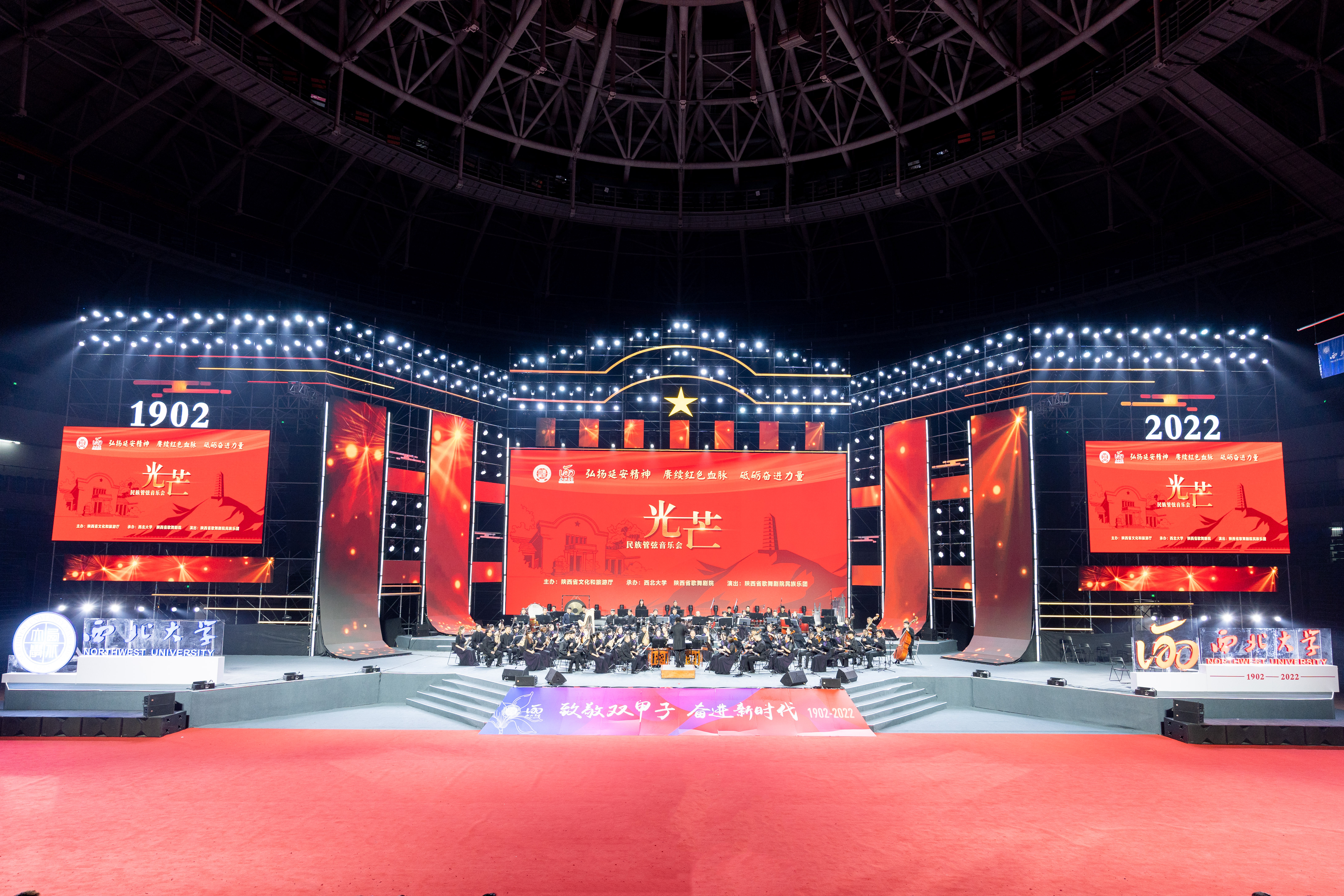 为弘扬延安精神,赓续红色血脉,砥砺奋进力量,在庆祝乐鱼网页版页面登录120周年华诞之际,11月16日晚,由陕西省文化和旅游厅主办,乐鱼网页版页面登录与陕西省歌舞剧院共同承办的民族管弦音乐会《光芒》在长安校区体育馆精彩上演。省歌舞剧院党委书记、院长李铁,省歌舞剧院艺术总监任勇,省歌舞剧院歌舞团团长党红岩,校党委副书记赵作纽,校党委常委、副校长陈富林,校党委常委、宣传部部长田明纲,党(校)办、校工会负责人等与校内师生共同观看演出。