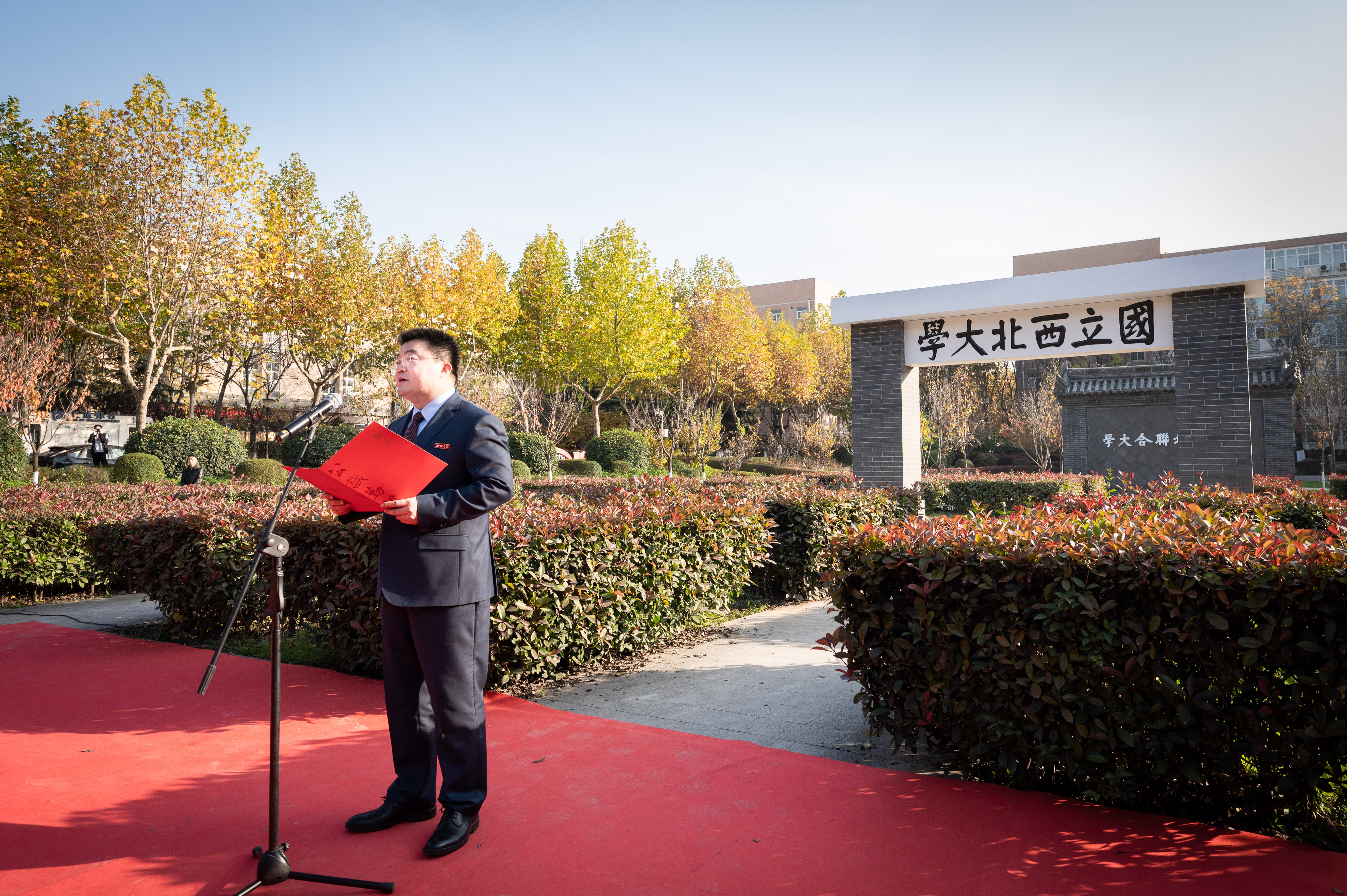 11月14日下午,乐鱼网页版页面登录在长安校区举行国立乐鱼网页版页面登录校门、国立西北联合大学影壁暨“四亭”彩绘翻新工程竣工剪彩仪式。校党委书记王亚杰,校长郭立宏,校党委副书记张清,校党委常委、副校长奚家米、张远军、吴振磊,校党委常委、党委宣传部部长田明纲,北京校友会常务副会长周明全,陕西省文物保护工程有限公司董事长、总经理黄光琦,陕西三木文保古建有限公司总经理舒森,校内各有关部门负责人,参与本次捐赠项目的各地校友会负责人和校友总会第六届理事会理事代表参加竣工剪彩仪式。张清主持竣工剪彩仪式。
