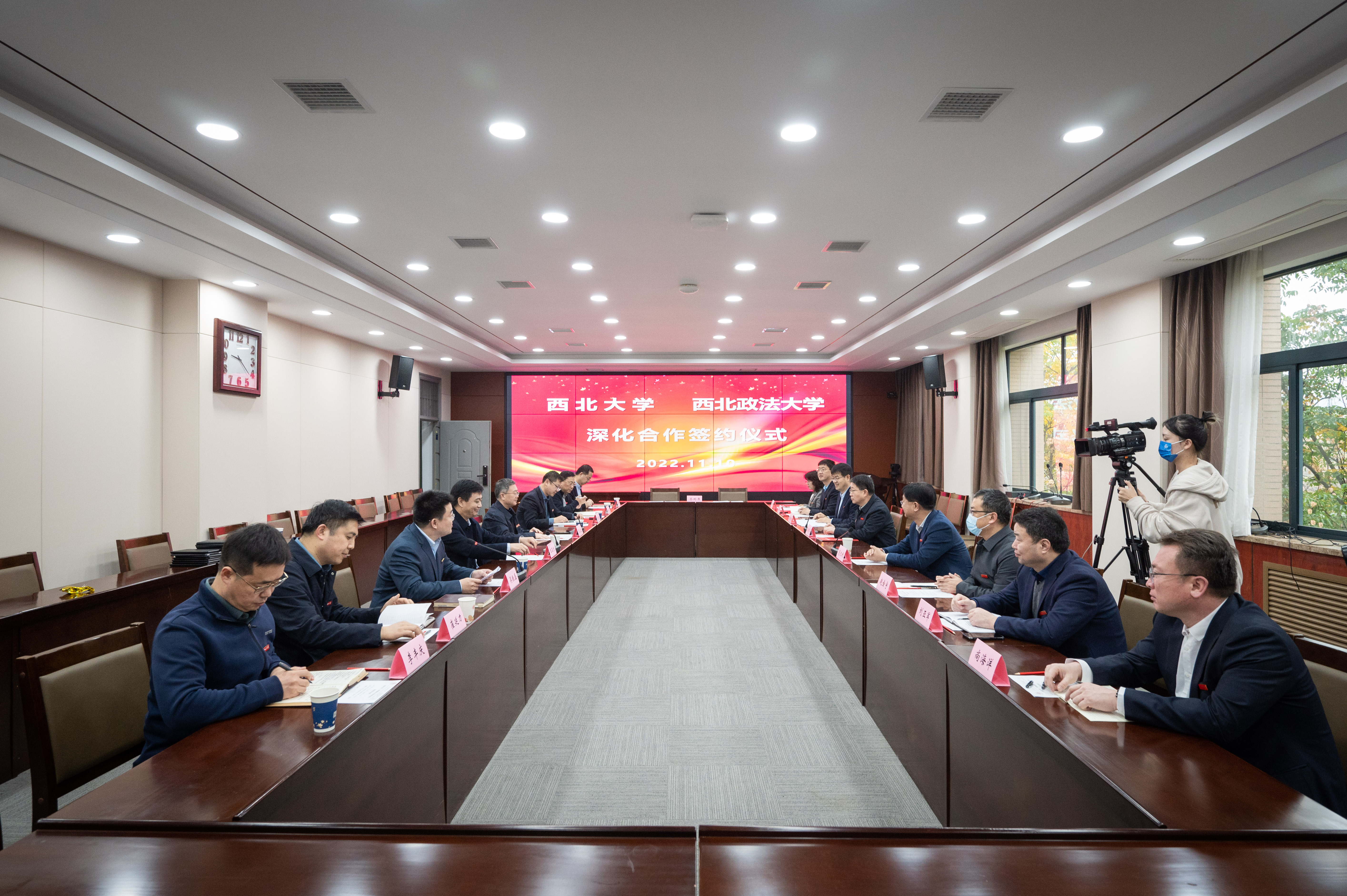 11月10日上午,乐鱼网页版页面登录与西北政法大学签署深化合作协议。校党委书记王亚杰,校长郭立宏,西北政法大学党委书记孙国华,校长范九利,校党委委员、副校长张荣刚,校党委委员、党政办主任赵全宇出席签约仪式,双方相关单位负责人参加活动。签约仪式由乐鱼网页版页面登录党委常委、副校长吴振磊主持。