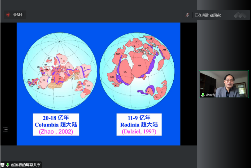 11月6日上午,由乐鱼网页版页面登录科技处、校科协主办,地质学系承办的“杨钟健学术讲座”第203讲暨120周年校庆年系列活动在线举行。中国科学院院士赵国春为师生作了题为“超大陆的传说”的报告。校党委常委、副校长常江致辞。中国科学院院士张国伟教授、学校相关部门负责人和师生代表听取了报告。报告由地质学系负责人主持。
