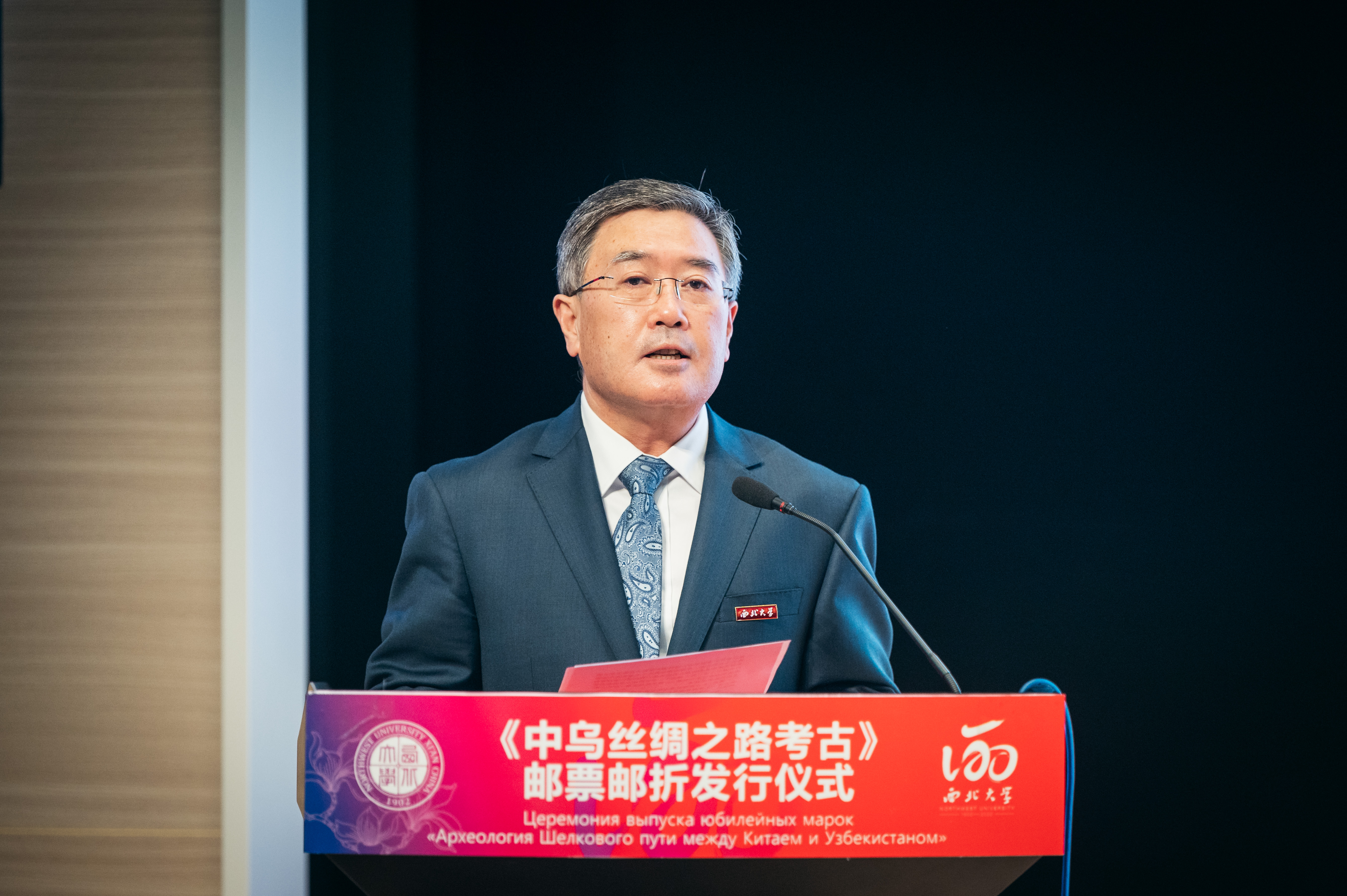 郭立宏在致辞中向与会嘉宾表示欢迎。他指出,推动发行中乌丝绸之路考古邮票,就是以邮票为桥梁和纽带,弘扬和践行丝绸之路精神,讲好新时代“一带一路”故事,激发两国人民的历史记忆和情感共鸣,赓续传统友谊,促进民心相通。他表示,中乌丝绸之路考古邮票将鼓舞和激励全体西大人踔厉奋发、勇毅前行,为推动丝路沿线人文交流和民心相通作出更大贡献。