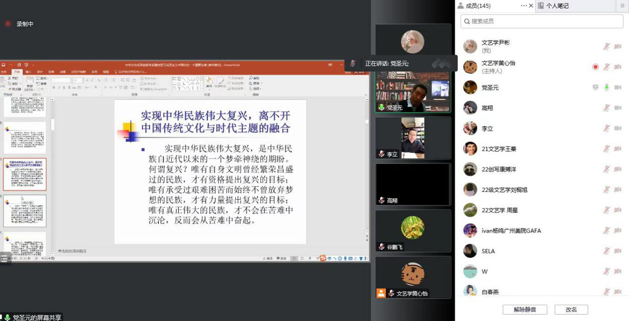 10月20日晚,中国社会科学院党圣元教授做客乐鱼网页版页面登录“侯外庐学术讲座”第249讲,为师生作了题为“中华文化传承创新体系建构是新时代中国马克思主义文论研究的一个重要论域”的线上学术讲座。讲座由文学院谷鹏飞教授主持,相关专业师生听取了讲座。