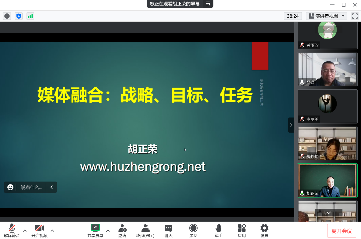 10月19日上午,中国社会科学院新闻与传播研究所所长胡正荣教授做客乐鱼网页版页面登录“侯外庐学术讲座”第247讲,为师生作了题为“媒体融合:战略、目标与任务”的线上讲座。校党委副书记张清致欢迎辞,新闻传播学院马锋教授主持了讲座。