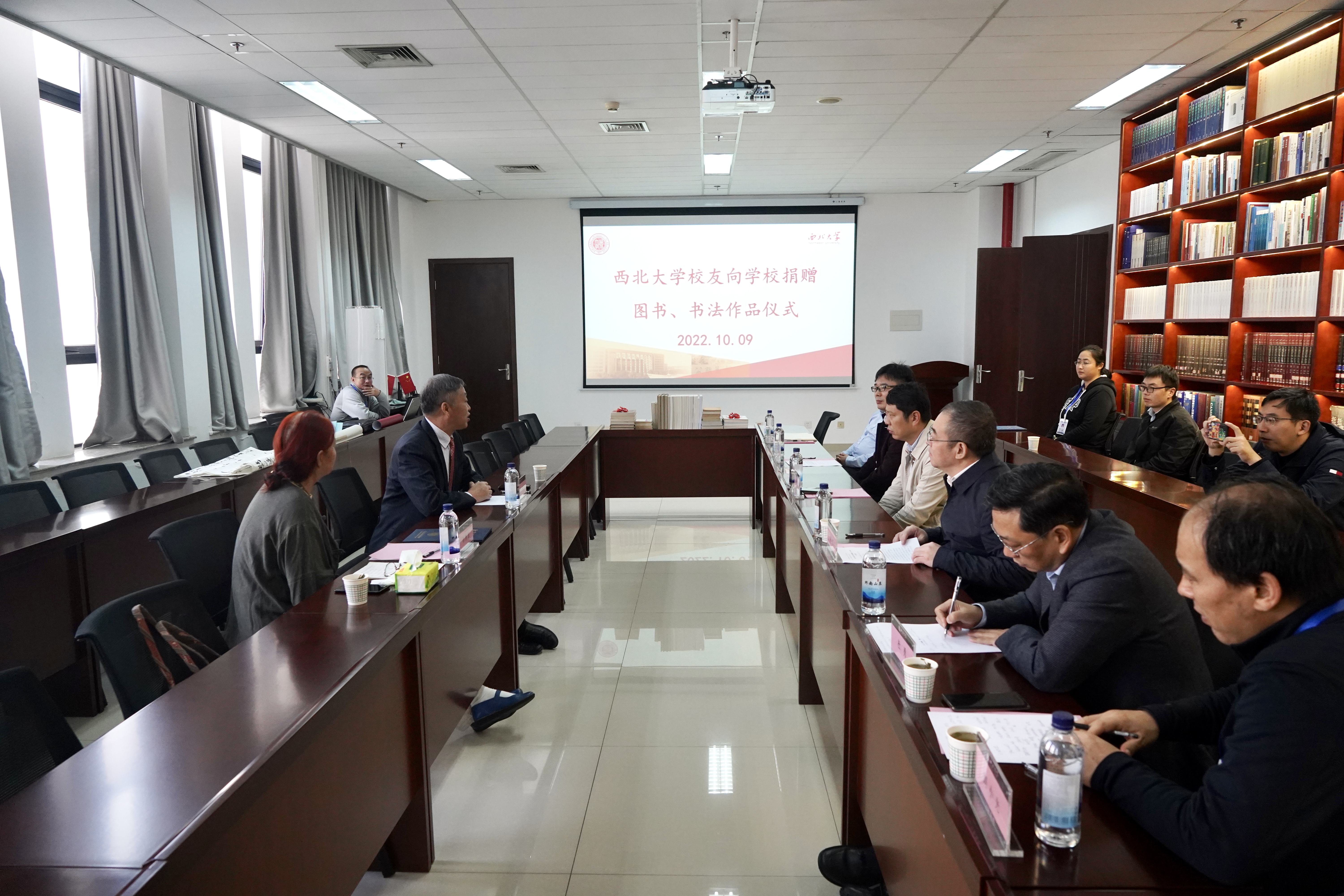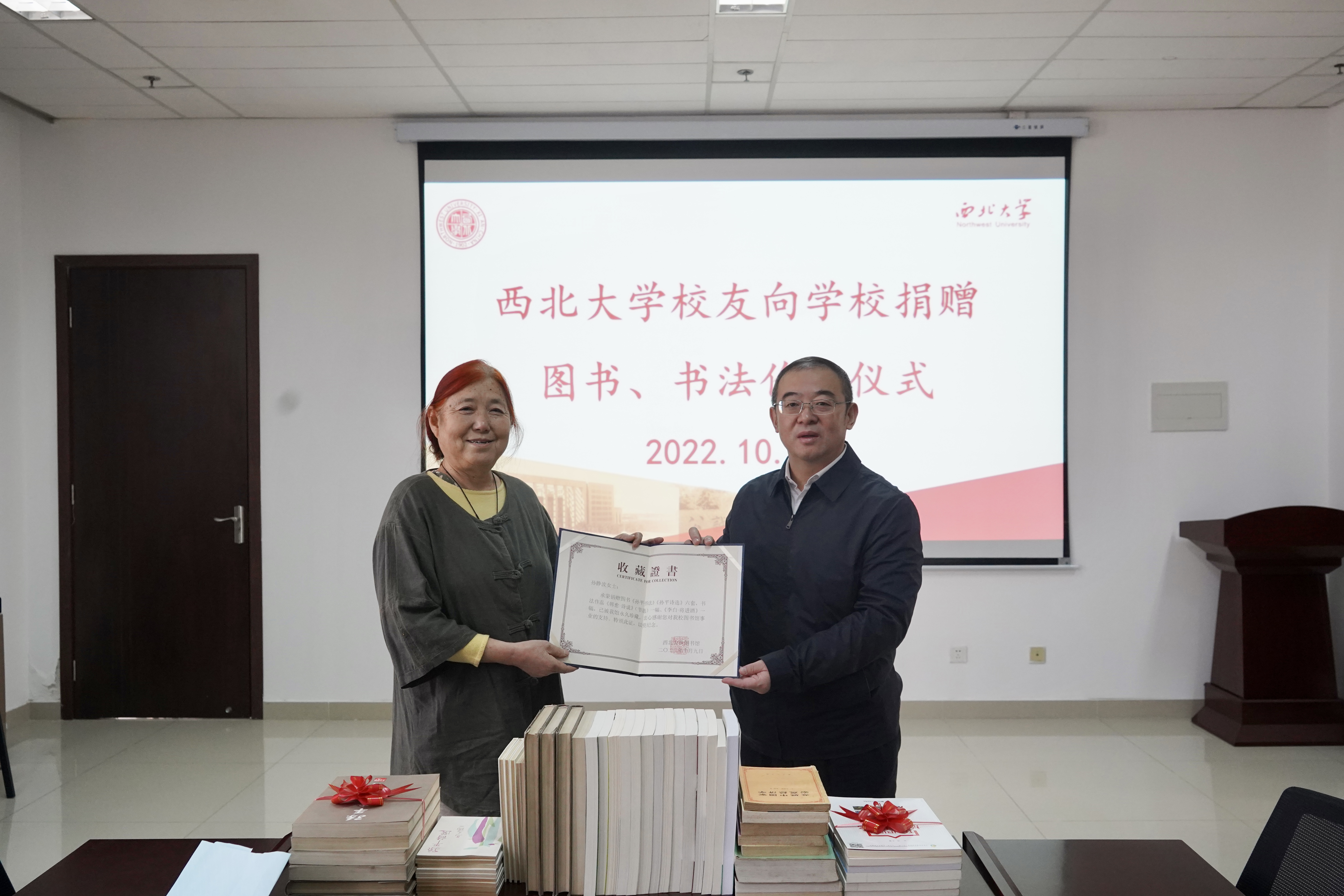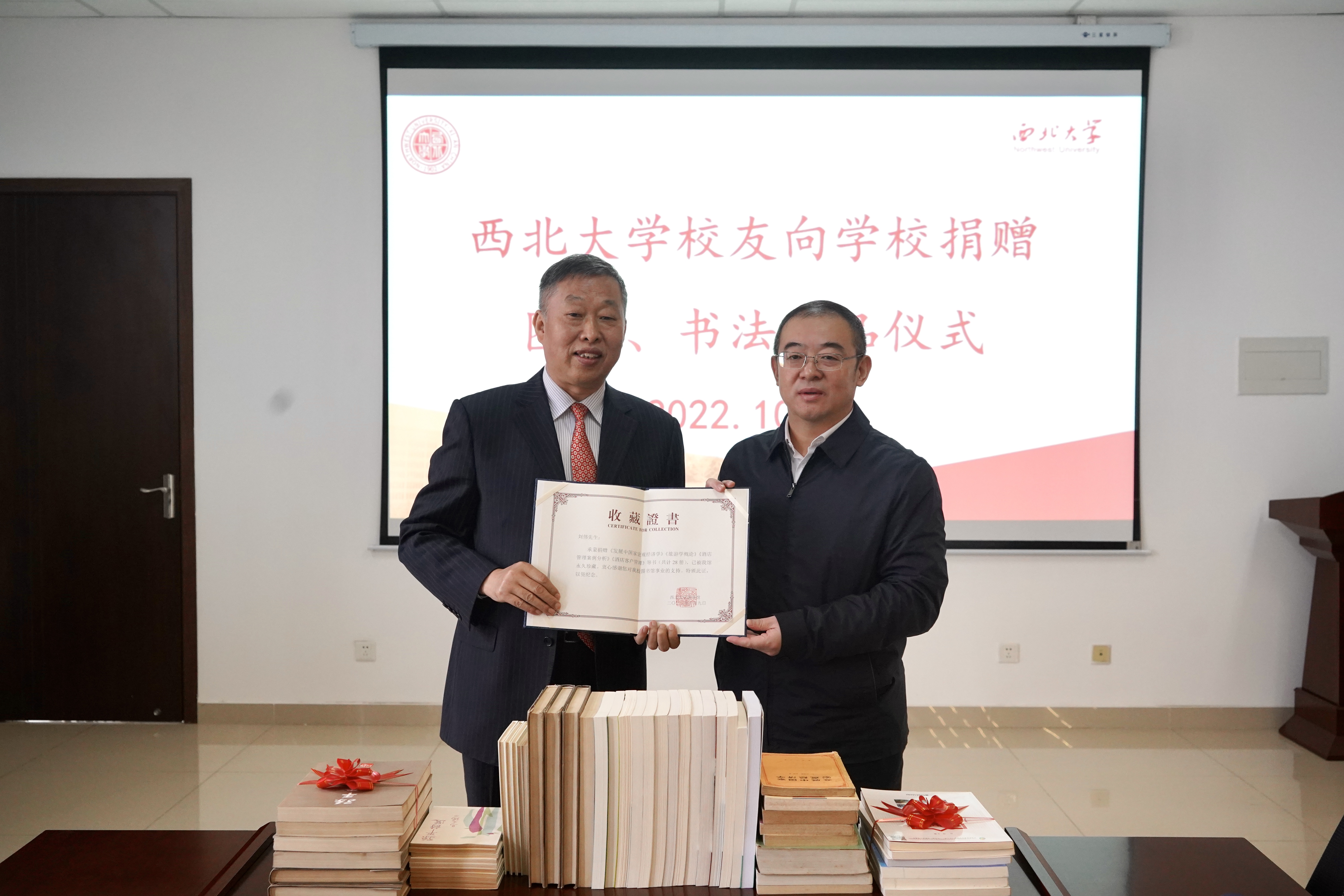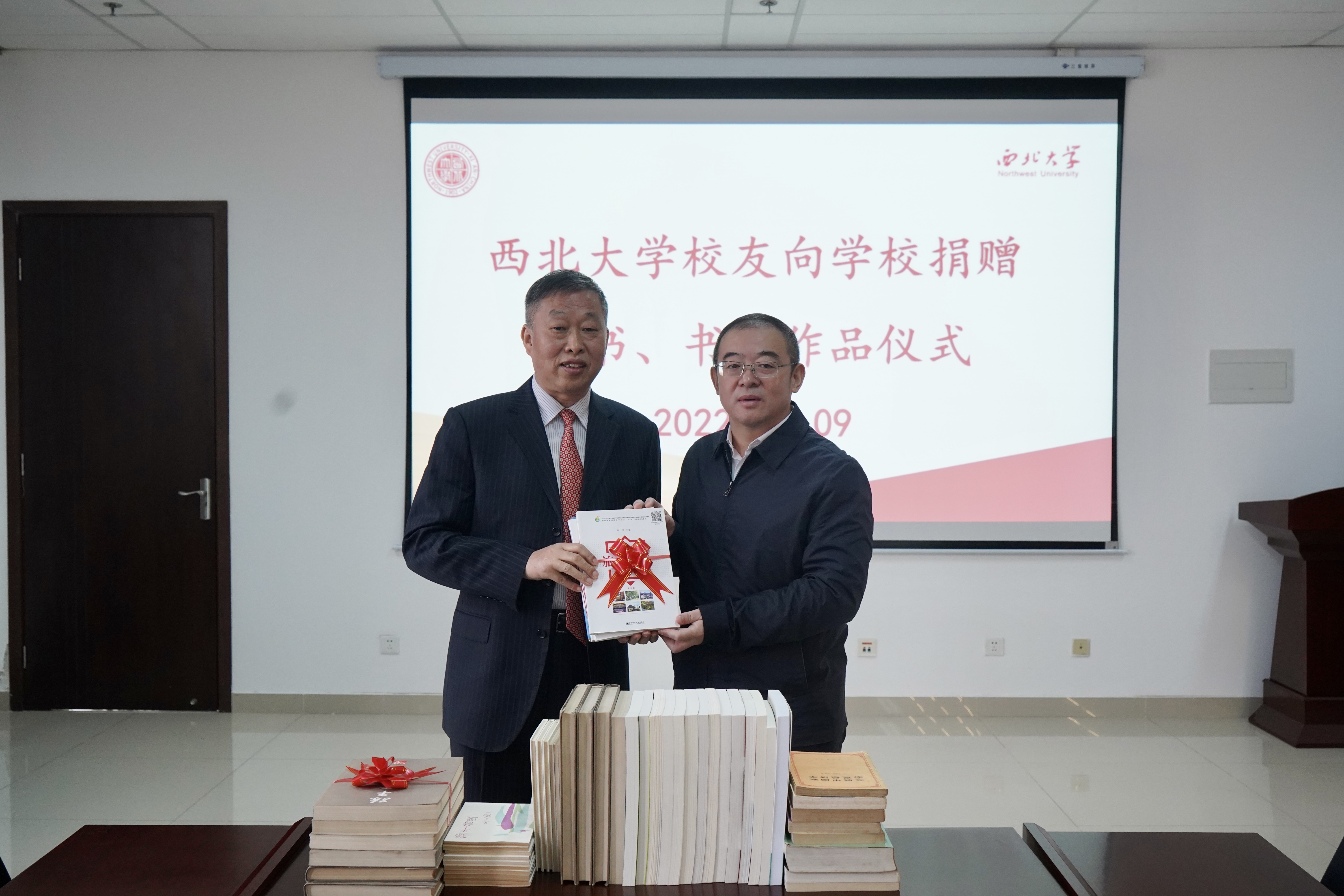 10月9日上午,乐鱼网页版页面登录校友向学校捐赠图书、书法作品仪式在长安校区举行。校党委常委、副校长常江,校友孙静波、刘伟,校庆办、经管学院、国内处、图书馆负责人参加活动。仪式由图书馆负责人主持。