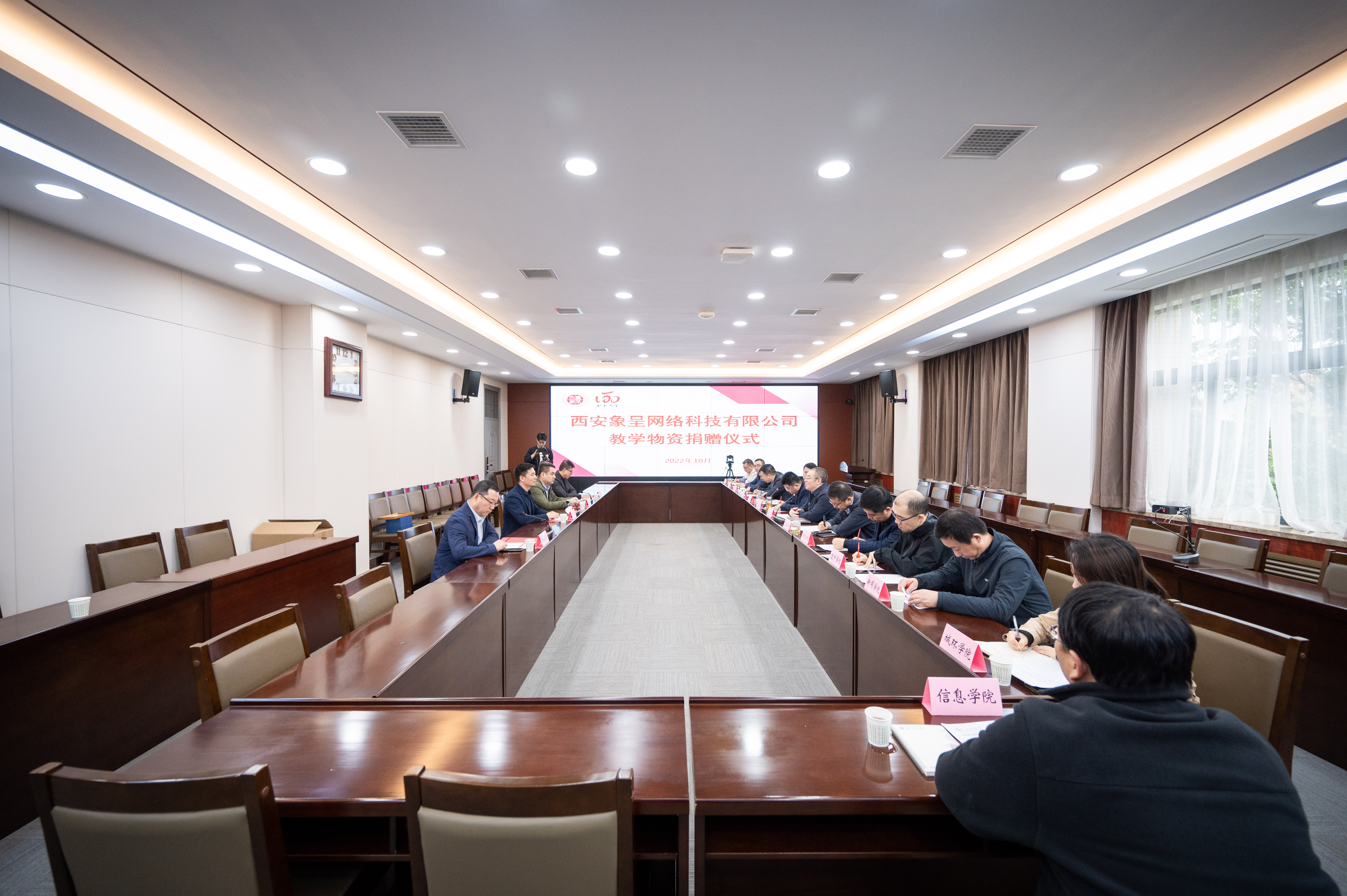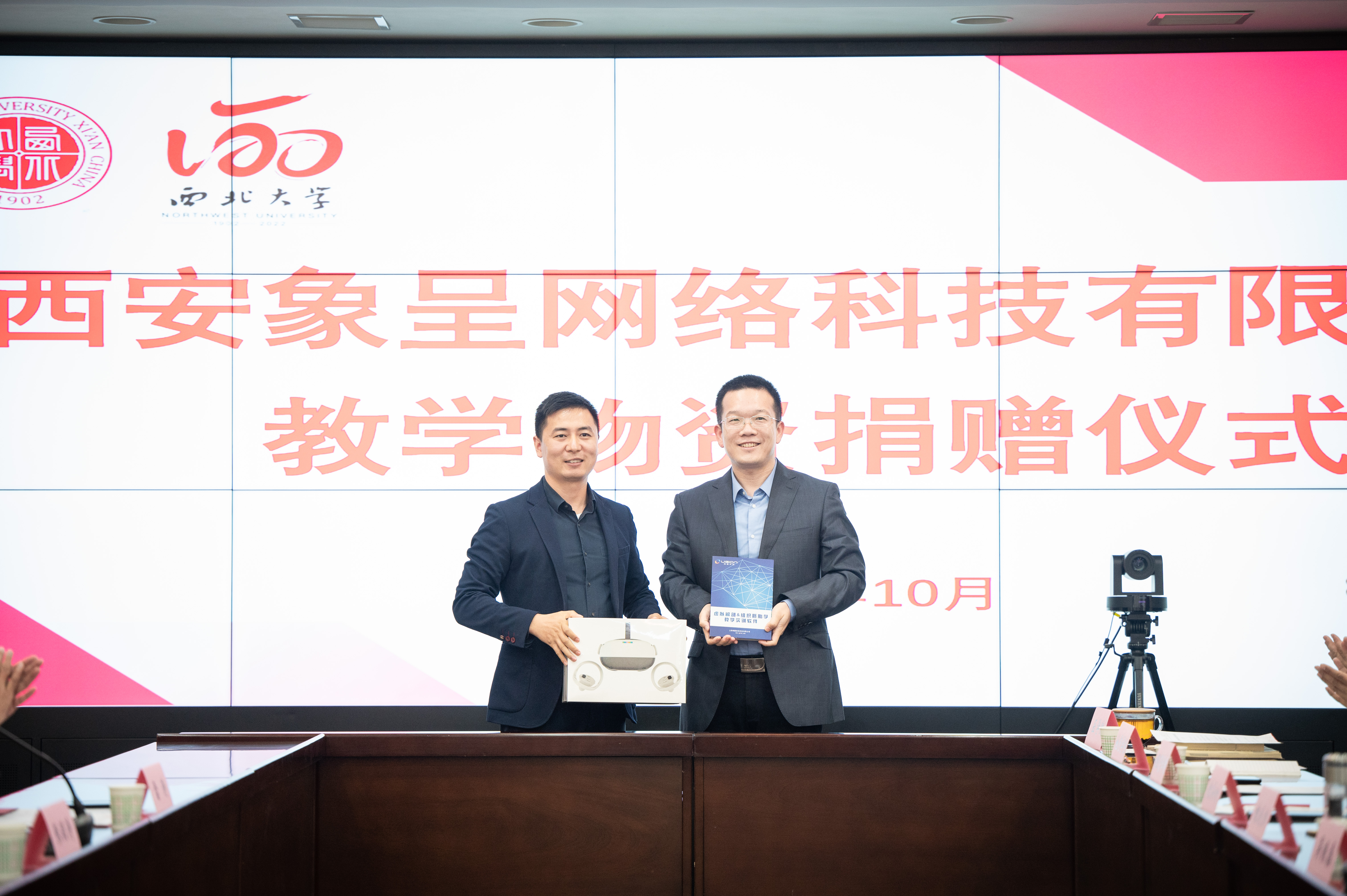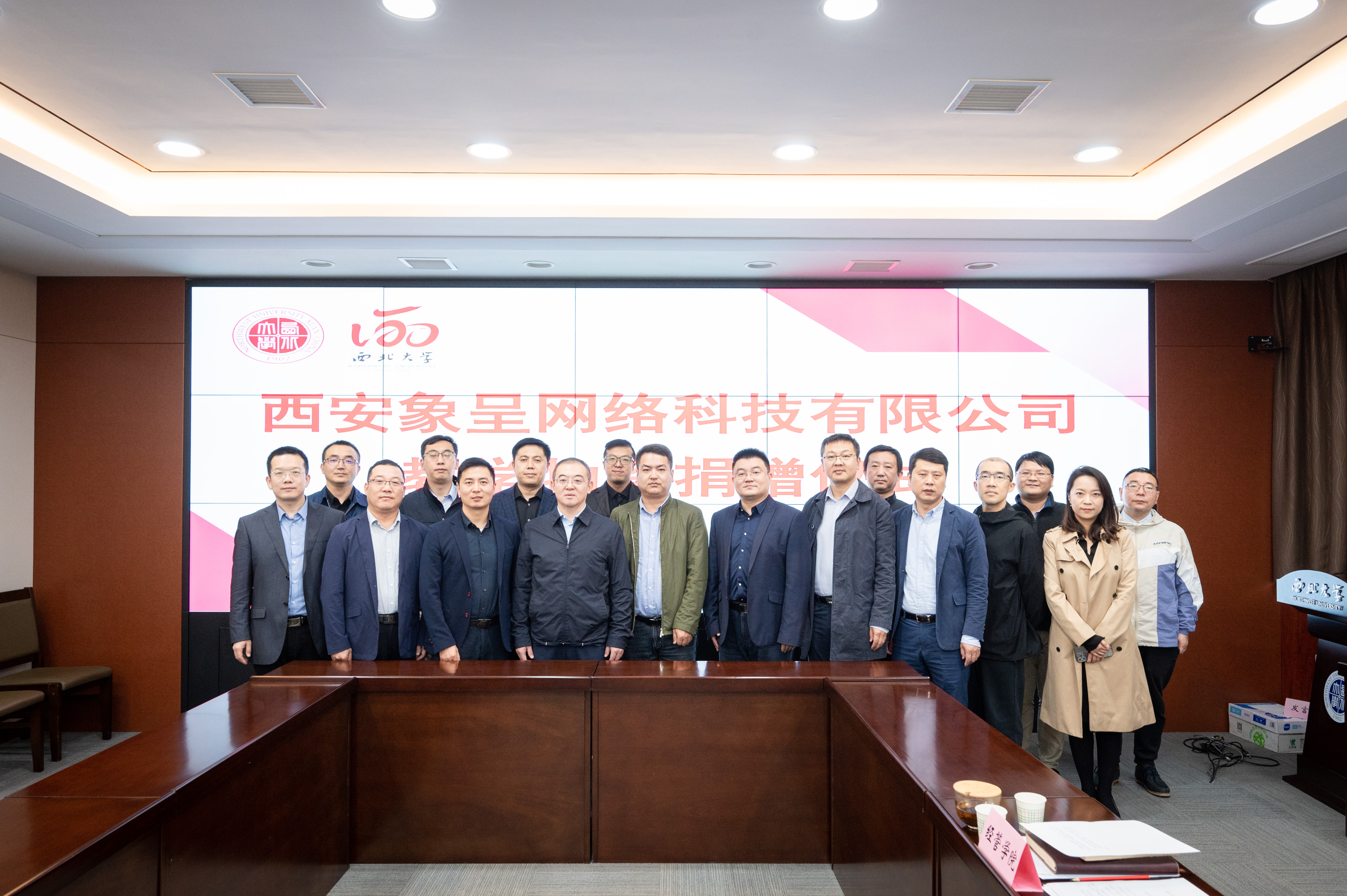 校党委常委、副校长、120周年校庆总指挥常江,西安象呈网络科技有限公司总经理张明军、副总经理张颖涛,西安象呈网络科技有限公司合伙人雷涛,域圆科技西北大区负责人马立军,党(校)办、校庆办、国内处、教务处、文化遗产学院、经济管理学院、新闻传播学院、地质学系、城市与环境学院、医学院及信息科学与技术学院等单位负责人参加捐赠仪式。校党委常委、副校长吴振磊主持捐赠仪式。