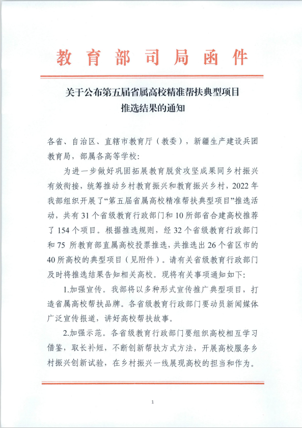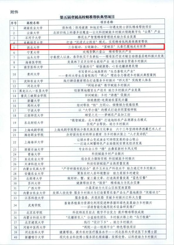 日前,国家教育部公布第五届省属高校精准帮扶典型项目推选结果,乐鱼网页版页面登录“三全驱动,五链融合,‘富硒茶’从秦巴腹地走向世界”被推选为全国省属高校精准帮扶典型项目,成为本届全省唯一上榜项目,这也是乐鱼网页版页面登录首次获得此项成果。