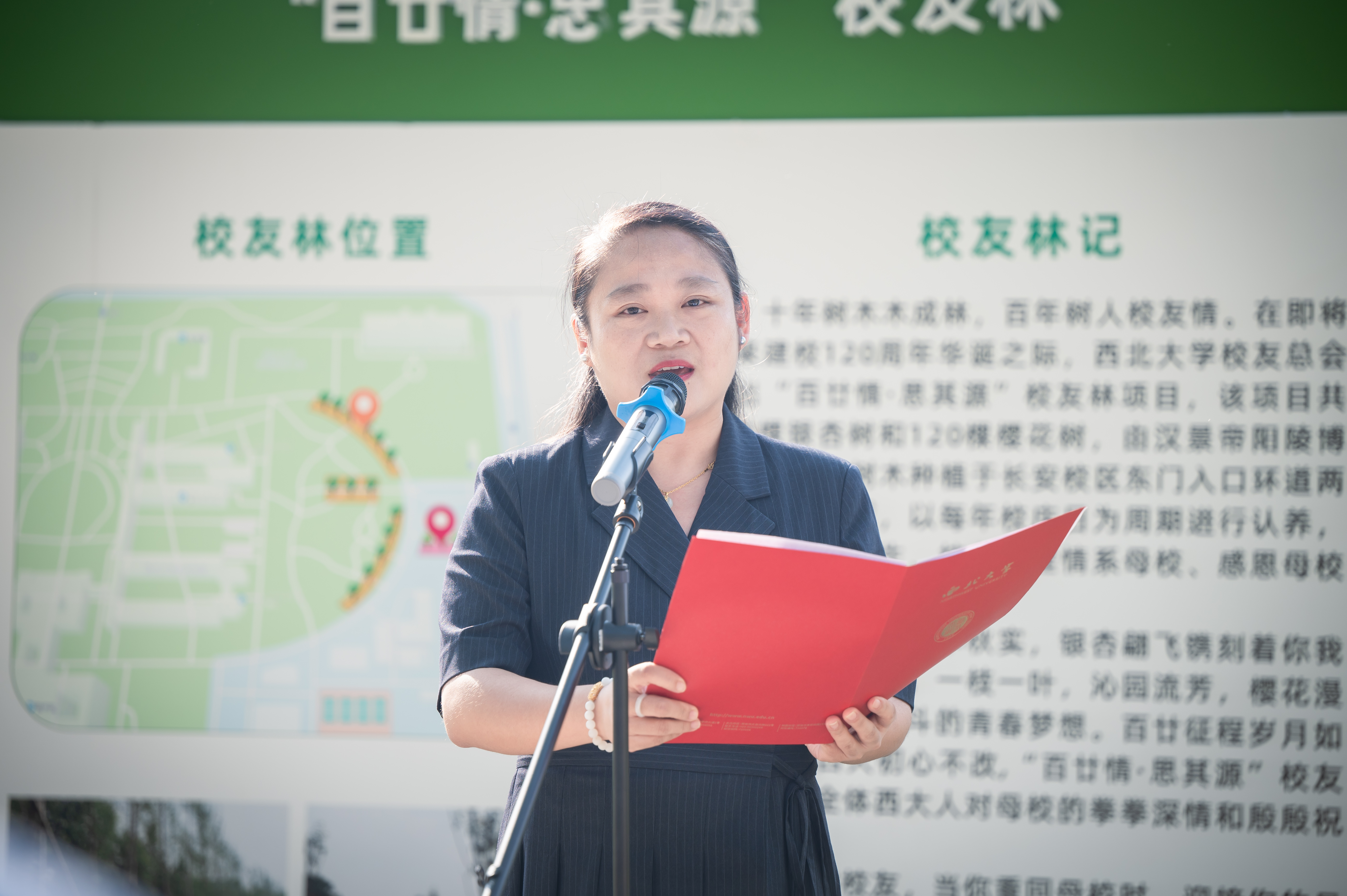 9月25日下午,学校在长安校区举行“百廿情·思其源”校友林揭牌仪式。校党委书记王亚杰,校党委常委、副校长吴振磊,汉景帝阳陵博物院院长、1989级校友李举纲,校庆办、学工部、研工部、国内处、后勤集团等部门负责人以及参与本次校友林认养的校友代表、师生代表参加揭牌仪式。校党委常委、副校长、120周年校庆总指挥常江主持仪式。