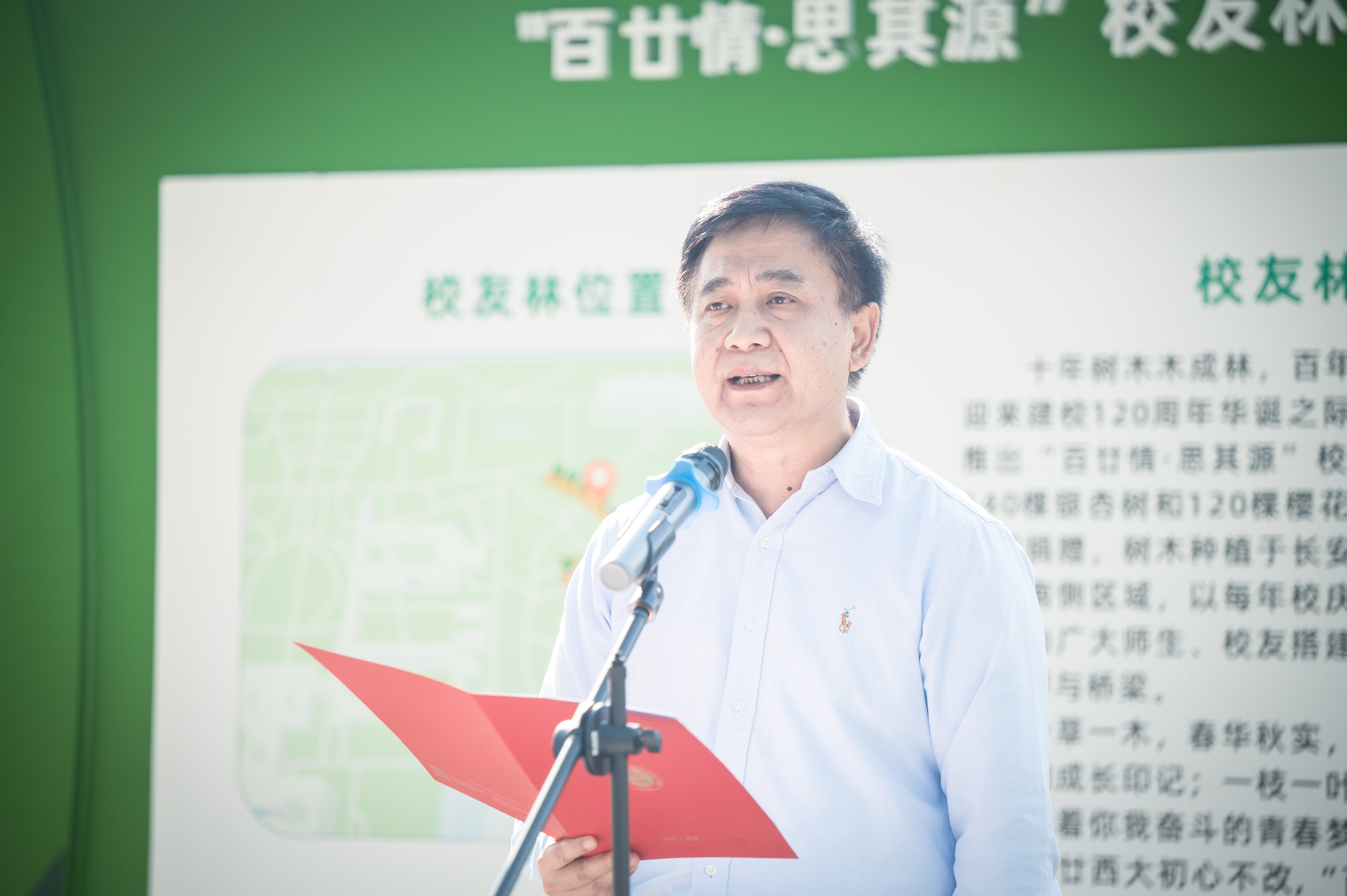 揭牌仪式上,吴振磊介绍了“百廿情·思其源”校友林情况。王亚杰、李举纲共同为“百廿情·思其源”校友林揭牌。学生代表杨子婕在发言中表示,作为一名西大学子,定常怀感恩之心,常行有为之举,做一名不负青春、不负母校的追梦人!