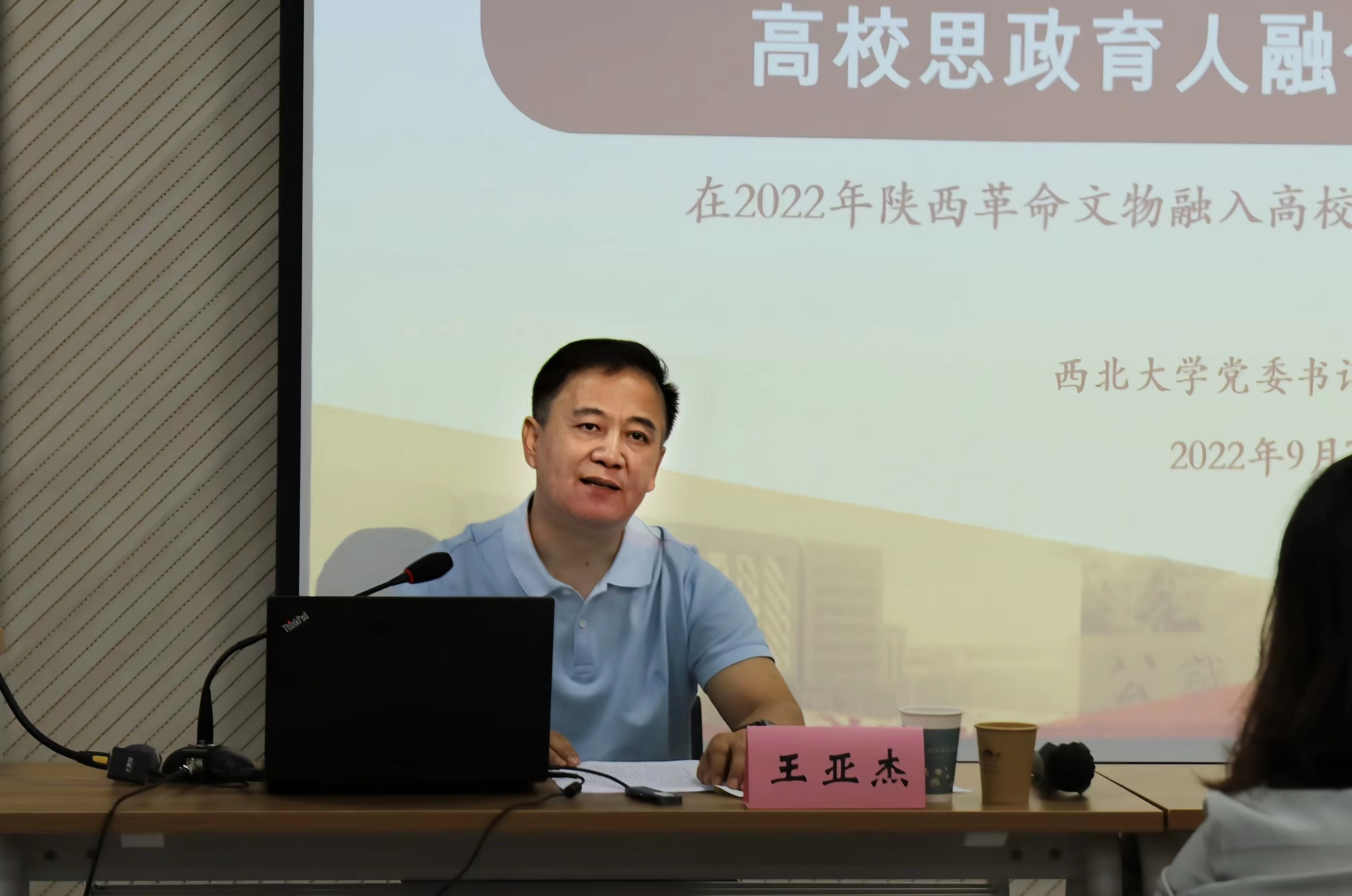 王亚杰强调,革命文物是承载红色历史、诉说英雄故事、传承不朽精神的重要载体,将革命文物记录的故事、承载的精神融入思政教育,塑造堪当民族复兴重任的一代新人,是思政课教师的重大责任和光荣使命。一要根植于中华传统优秀文化,站在“两个结合”的高度充分认识革命文物融入高校思政教育的重大意义和深刻内涵。二要依托陕西丰富的革命文物红色资源,深入探索革命文物资源深度融入高校思想政治教育的新路径、新方式。三要引导广大青年“立大志、明大德、成大才、担大任”,使其成为播种信念的“孵化器”、淬炼初心的“活教材”、筑牢底色的“指南针”。
