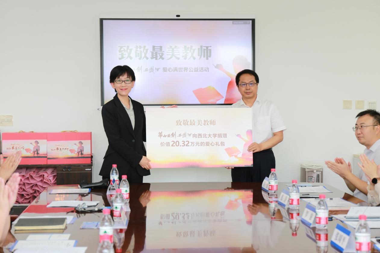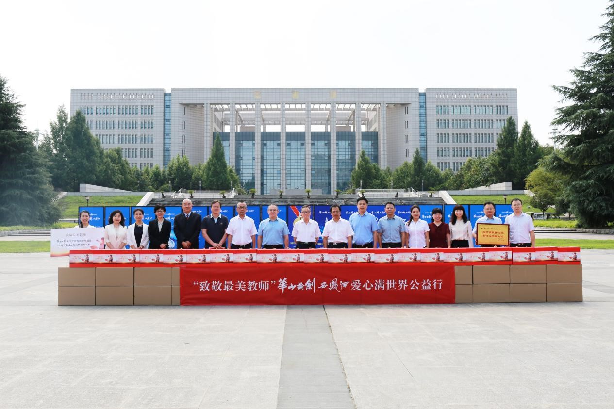 9月1日上午,“致敬最美教师”华山论剑西凤酒爱心满世界乐鱼网页版页面登录公益行捐赠仪式在乐鱼网页版页面登录长安校区举行。陕西省人大原秘书长、中国西部发展研究中心理事长桂维民,华山论剑品牌管理有限公司党委书记、总经理张周平,公司相关部门负责人,乐鱼网页版页面登录党委常委、副校长常江,校工会、国内合作与校友工作处负责人,外国语学院相关负责人,乐鱼网页版页面登录教授、陕商研究专家李刚出席捐赠仪式。仪式由外国语学院党委负责人主持。