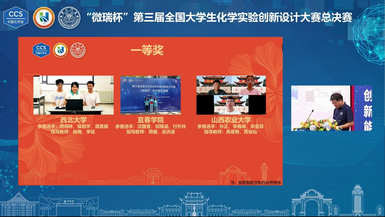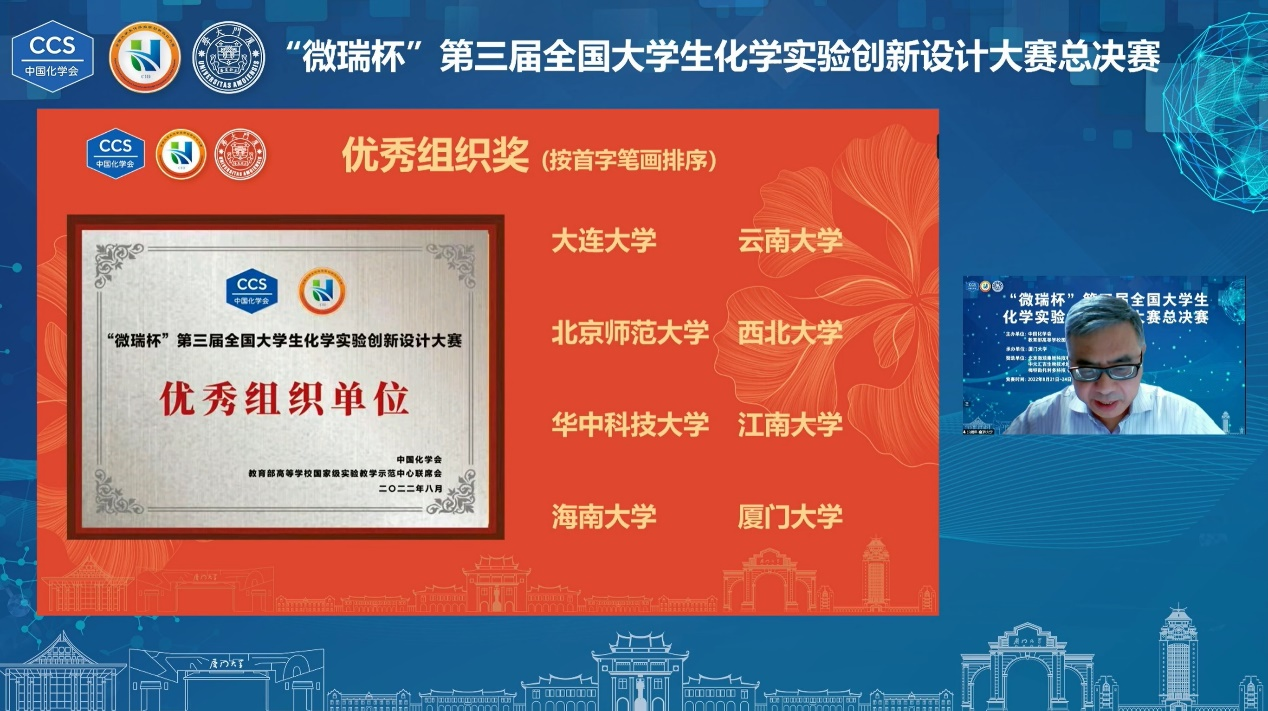 全国大学生化学实验创新设计大赛是由中国化学会、教育部高等学校国家级实验教学示范中心联席会主办的全国性大学生学科竞赛。本届大赛共有410所高校、908支队伍参赛。经过前期东北、西北、华北、华东、华中、西南、华南七大赛区的激烈角逐,最终有90支队伍晋级总决赛。