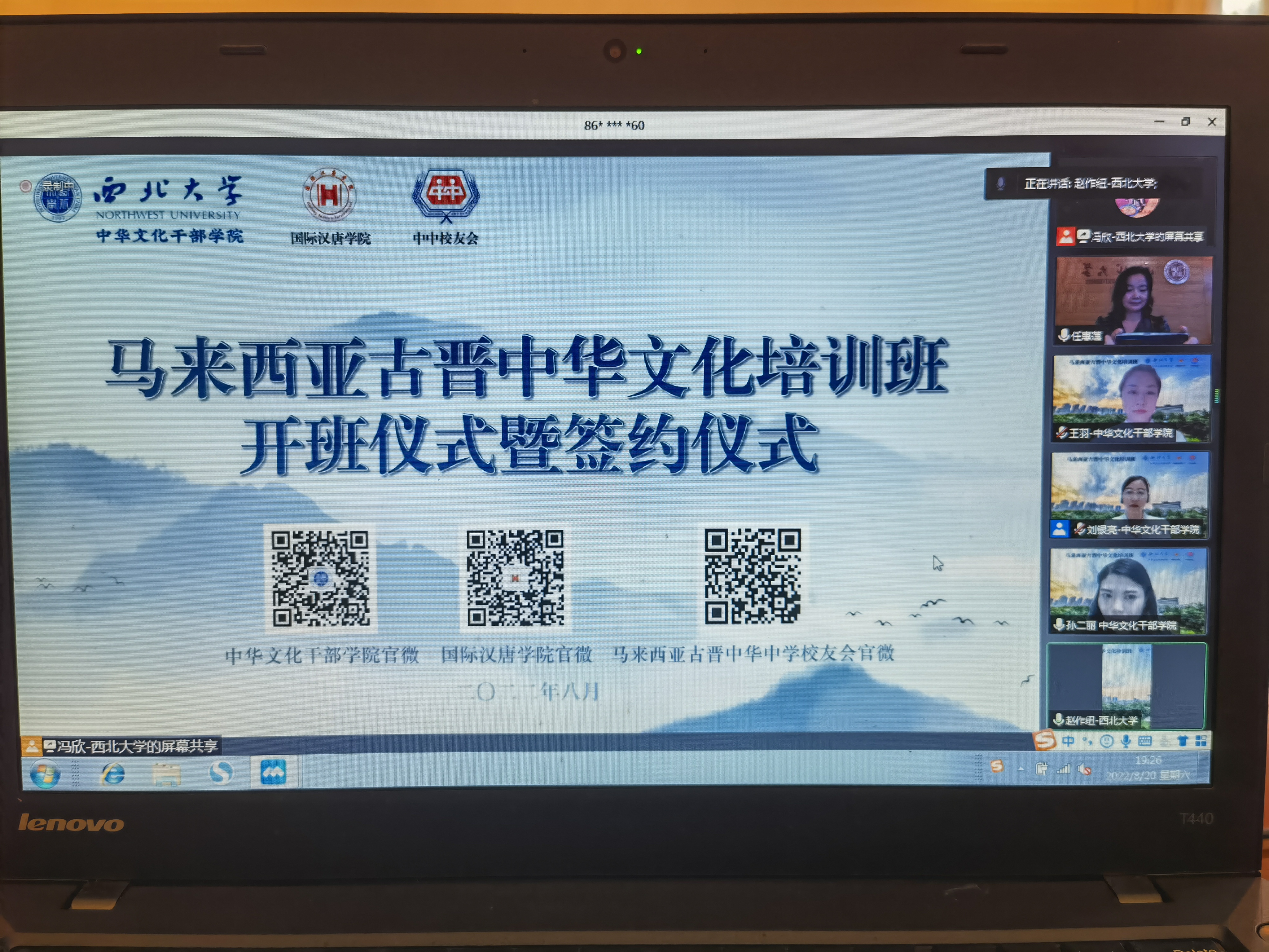 8月20日晚,由乐鱼网页版页面登录国际汉唐学院、中华文化干部学院、马来西亚古晋中华中学校友会联合举办的马来西亚古晋中华文化线上培训班开班仪式暨签约仪式顺利举行。中国驻古晋总领事馆总领事邢伟平,马来西亚古晋中华中学校友会会长、乐鱼网页版页面登录客座教授、拿督黄国辉,校党委常委、副校长赖绍聪出席线上开班仪式暨签约仪式,培训班全体学员近400人参加。仪式由校党委副书记、中华文化干部学院院长赵作纽主持。