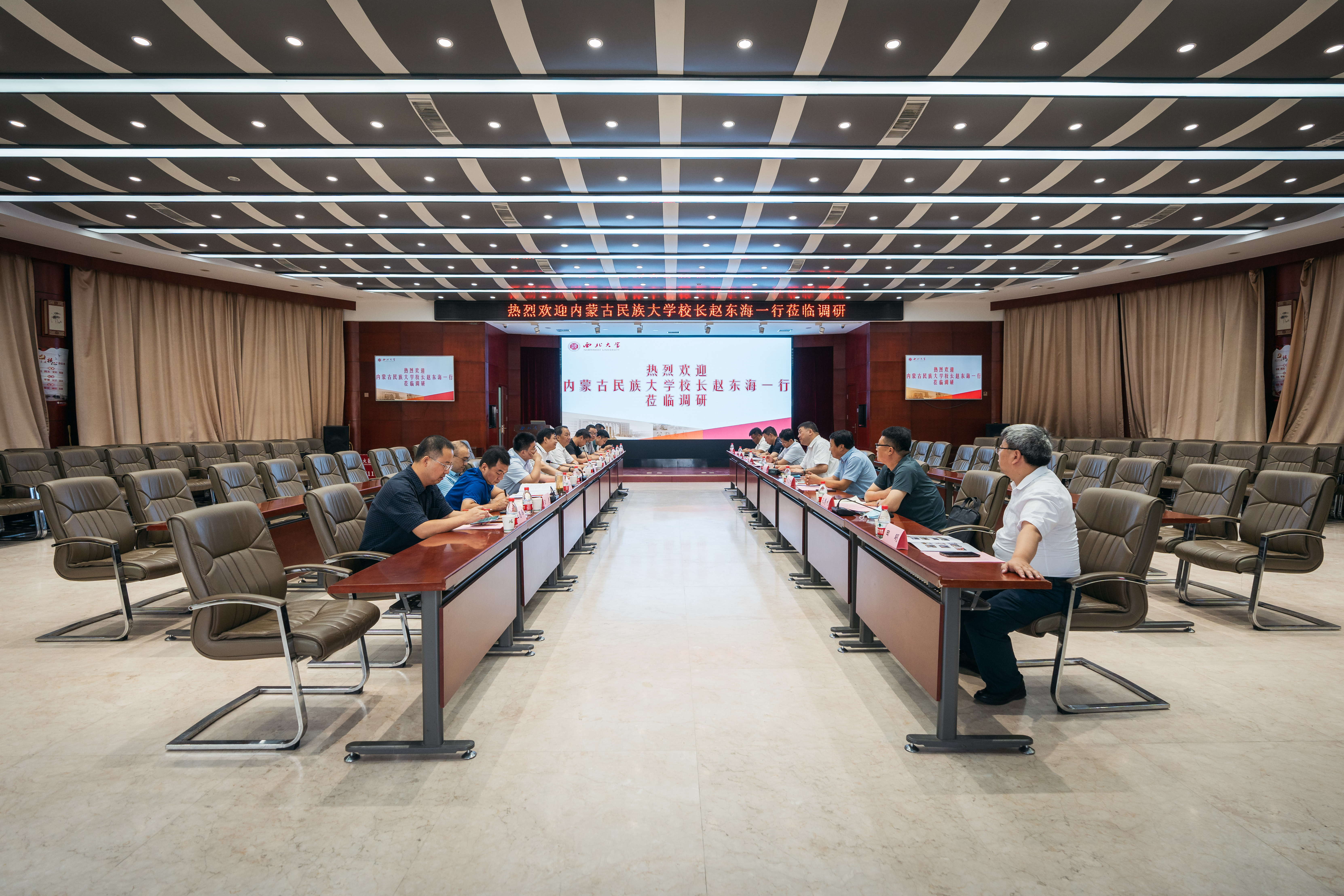 8月15日,内蒙古民族大学校长赵东海一行来校调研座谈会在太白校区举行。校党委书记王亚杰,校党委常委、副校长吴振磊出席会议,党(校)办、人力部、科技处、规划与学科处、国内处、法学院、中东所主要负责人参加会议。校党委副书记、纪委书记、省监委驻校监察专员李邦邦主持会议。