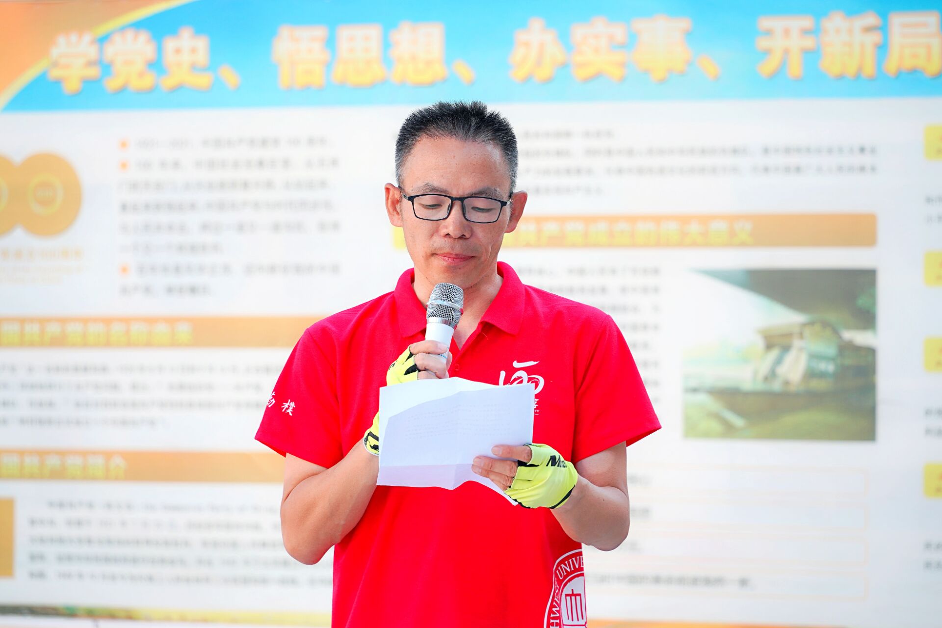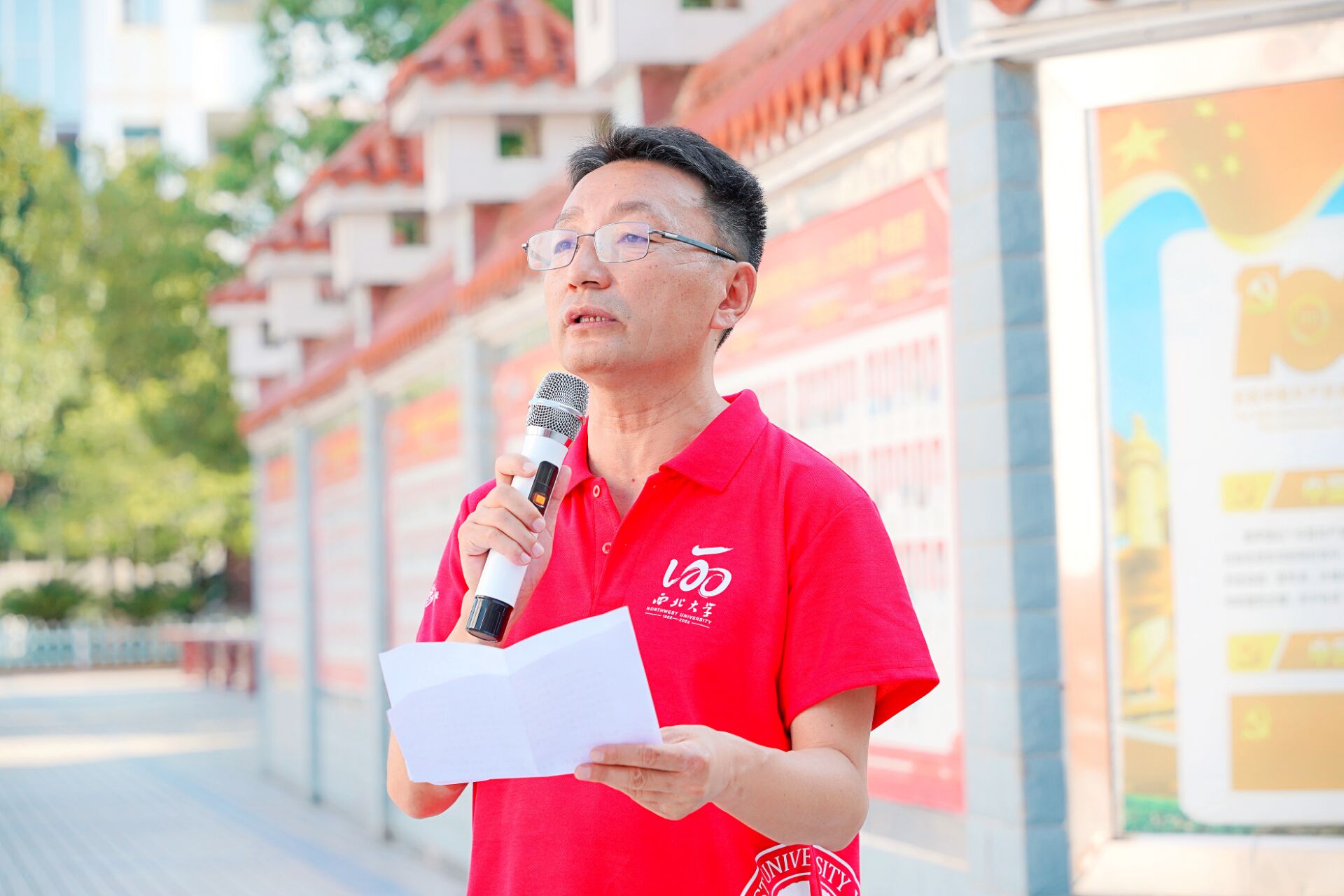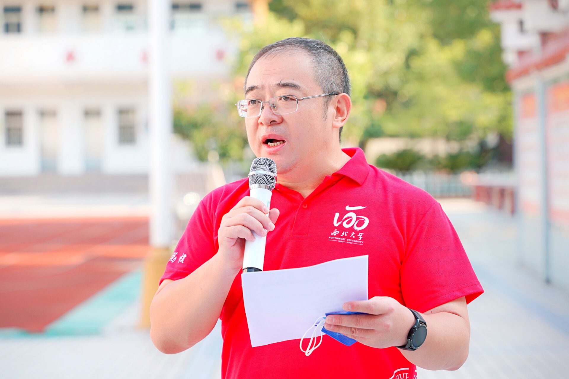 刘小宁代表骑行队员发言。他说,重走南迁路,既是一条追溯历史、缅怀先辈之路,更是一条不忘初心,奋勇前行之路。在百廿校庆之际,我们以骑行的形式重走抗战时期国立西北联合大学南迁之路,历时6天,走过528公里,向120周年校庆献礼,未来也将用脚踏实地地奋斗为学校事业发展贡献力量,谱写西大新时代的精彩华章。