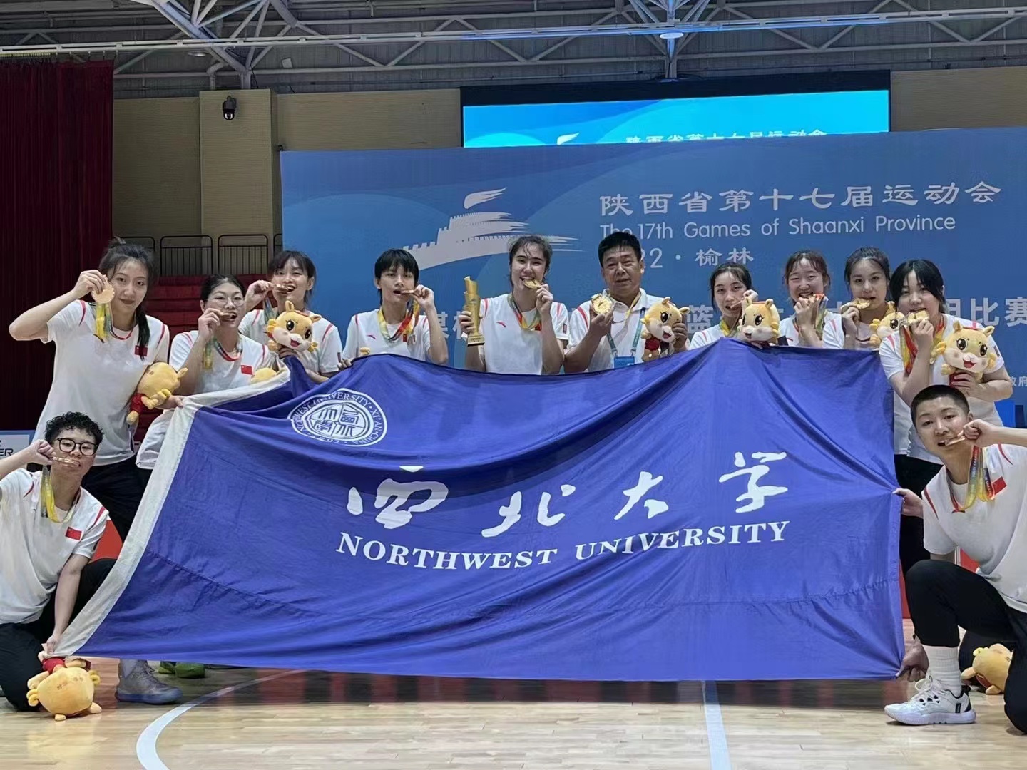 比赛中,乐鱼网页版页面登录女子篮球队奋勇拼搏,突破极限,小组赛中三场全胜,累积分小组第一出线。经过半决赛和冠亚赛的激烈角逐,最终获得陕西省第十七届运动会大学生篮球比赛女子甲组冠军。徐辉军老师荣获“优秀教练员”称号,王月、景雨欣、郑雨涵、王妍晖、曹丹丹、菲茹扎·艾海买提江同学荣获“优秀运动员”称号。