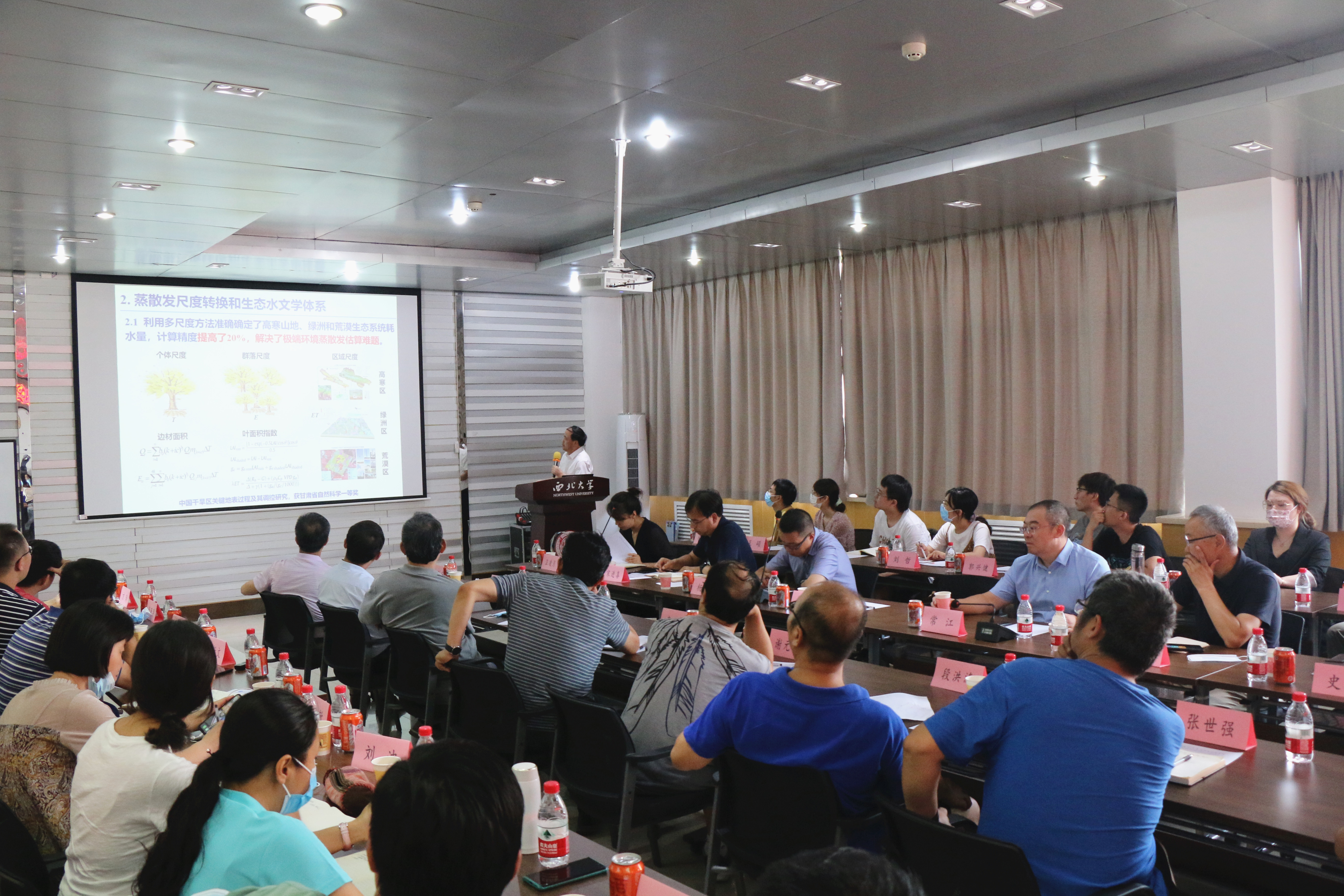 报告中,冯起院士从西北区域的重要性、西部生态环境问题、其中的关键问题和理论基础薄弱的角度引入,深刻阐述了西北内陆河流生态水文研究的重大背景和科技需求基础,重点介绍了其科研团队在内陆河流域寒旱区生态恢复的水调控理论与技术研究成果。针对内陆河流域复杂生态系统退化水调控机理认知有限、生态水文理论尚不能有效指导生态恢复实践这一科学难题,冯起院士阐述了揭示内陆河流域生态系统与水文过程互作机制,解决极端环境蒸散发尺度转换方法及高精度难题,建立以高寒山地水文、绿洲生态水文、荒漠生态水文为核心的内陆河生态水文学理论体系,以及形成寒旱区生态系统多维临界调控理论方面的理论创新。针对不同类型退化生态系统恢复和修复存在的技术瓶颈问题,冯起院士通过介绍高寒山区水源涵养植被保育技术集成、绿洲节水灌溉与节水型植被防护体系、内陆河生态安全与恢复的水调控模式等,阐释了在创建内陆河流域不同类型生态系统恢复和治理的调控技术,支撑高寒水源地、平原绿洲、荒漠过渡带三道生态防线建设,保障丝绸之路经济带生态屏障与生态安全等方面的技术体系与实践成果。针对极端环境下生态恢复技术适应性模式体系亟待研发的迫切需求,冯起院士结合荒漠河岸林胡杨生态重建技术、“五带一体”风沙防护技术、草地修复和水源地保护技术、生物多样性和湿地保护技术、西北内陆区水资源安全保障技术,还介绍了内陆河极端环境生态恢复调控技术与模式在内蒙古、甘肃、新疆、青海、山东沿海以及蒙古国等地推广应用取得的显著成效。最后,他简要介绍了中科院内陆河生态水文重点实验室等相关研究平台和团队。
