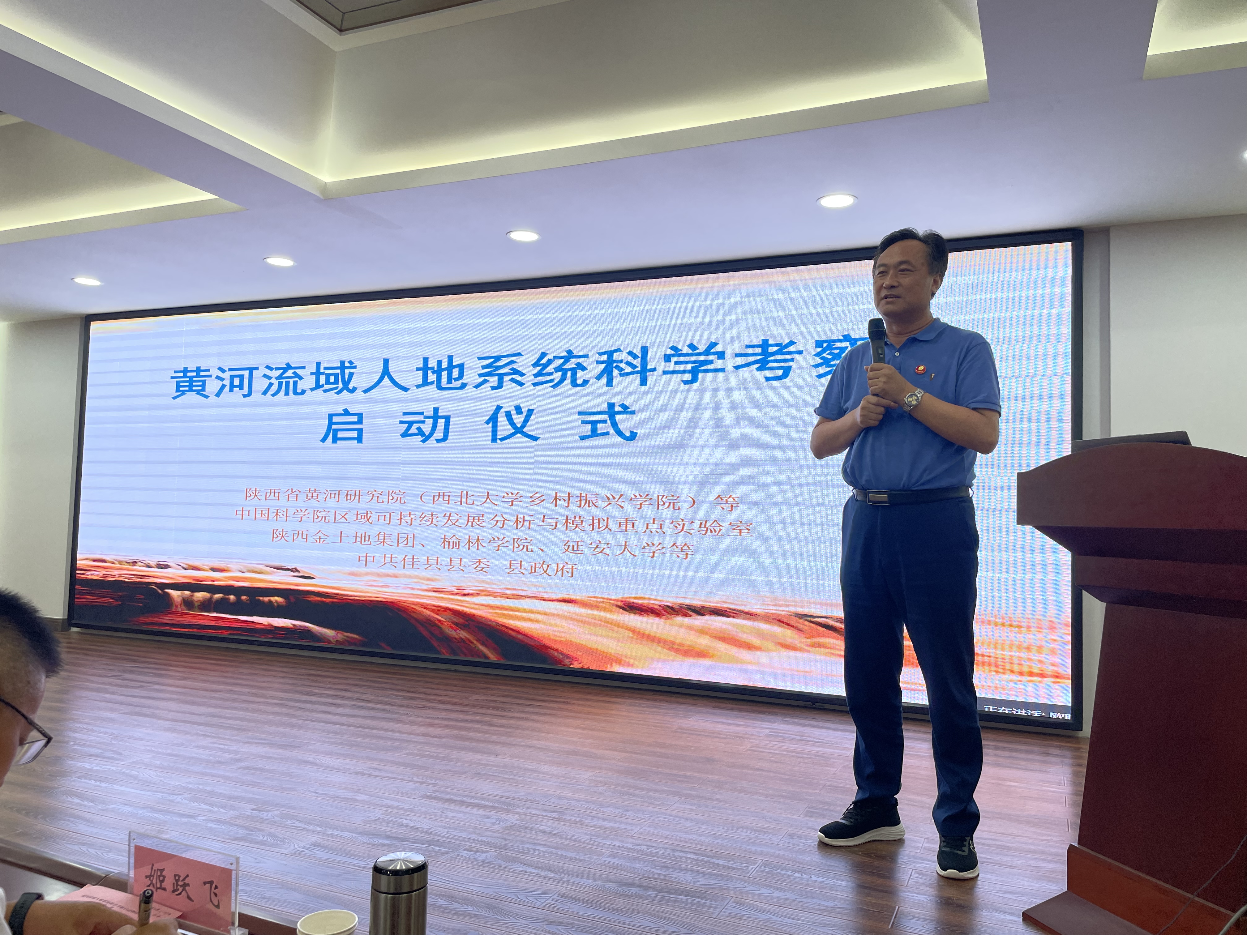 在学校长安校区举行的出发仪式上,常江向科考队授队旗,黄河研究院执行院长宋进喜教授代表考察队讲话。在榆林市佳县举办的启动仪式上,傅伯杰院士、郭立宏、姬跃飞等分别致辞,刘彦随院士代表科考队讲话并宣布科考活动正式启动。